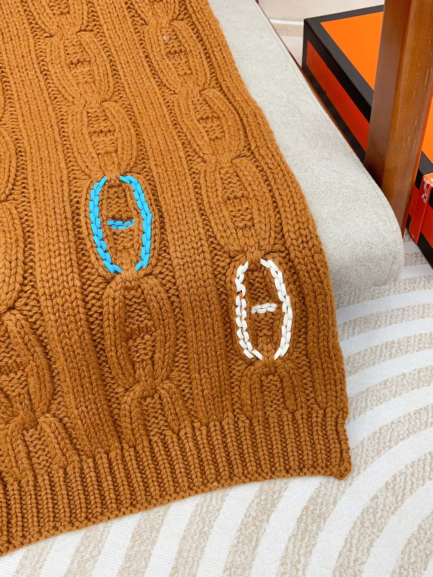 Scarf 170 CM Brown Orange Cashmere Handwoven