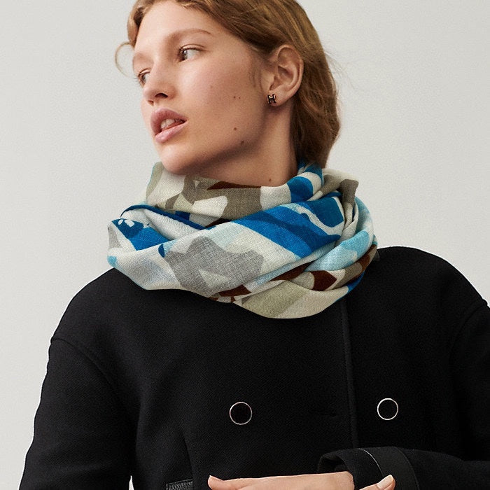 Scarf 180 CM Khaki Green Colorful Mashmere And Silk 403884