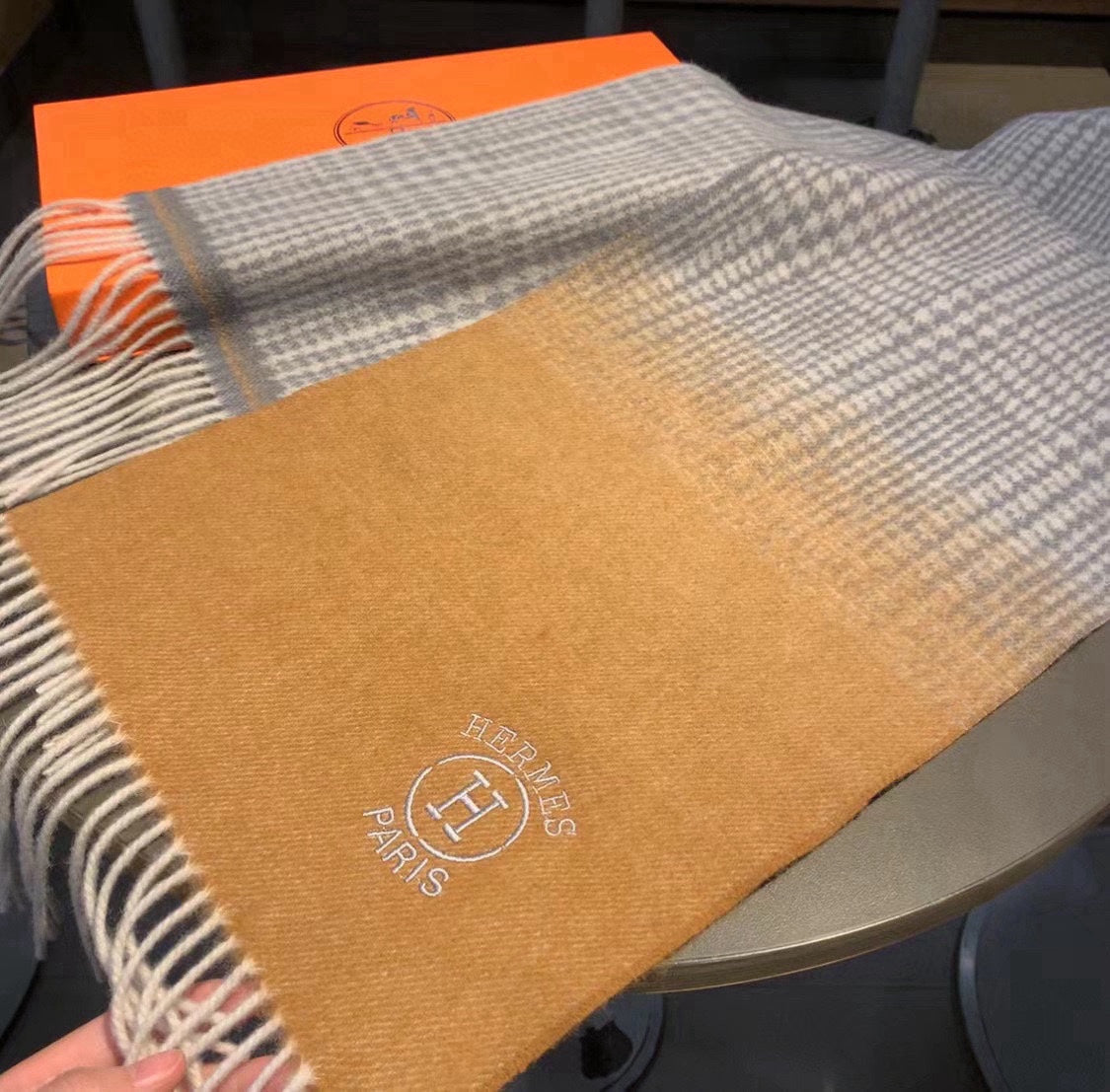 Scarf 180 CM Light Brown Gradient Grey Caro Cashmere 398223