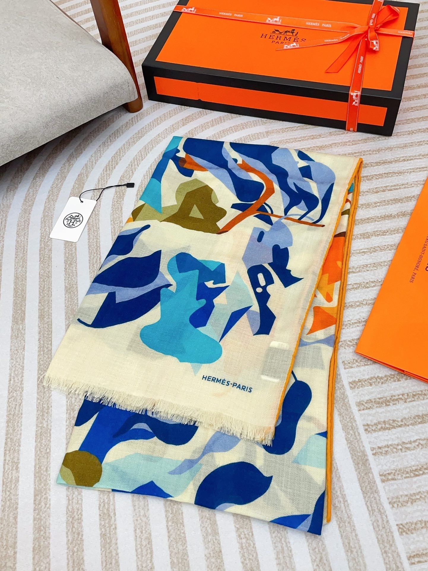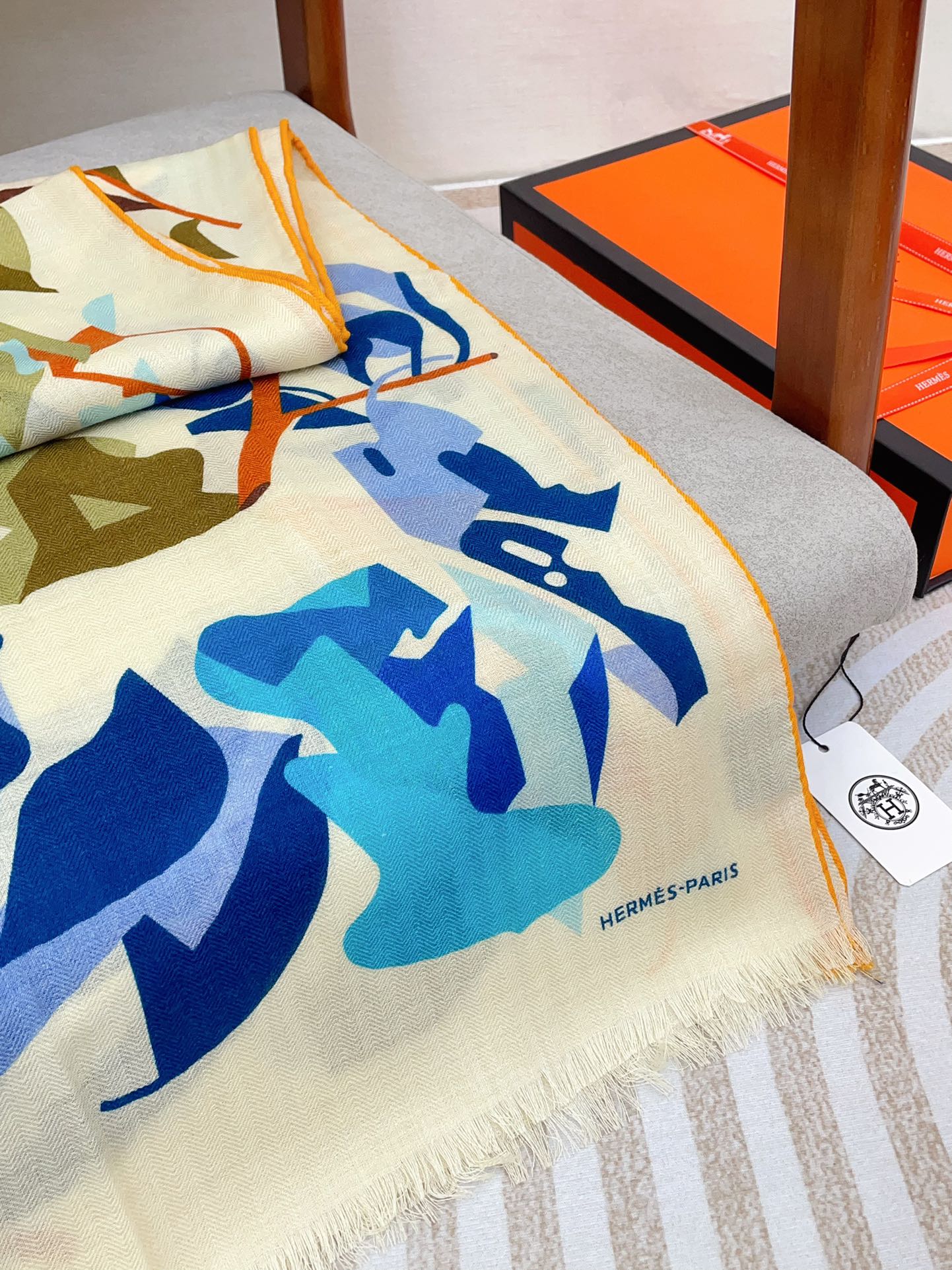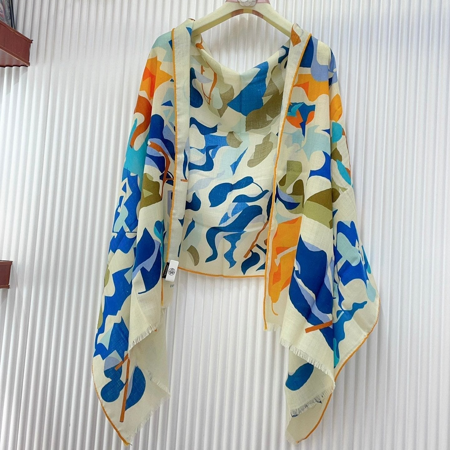 Scarf 180 CM White Colorful Mashmere And Silk 403887
