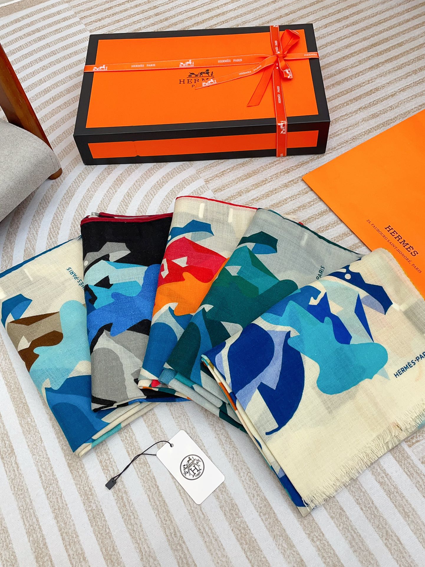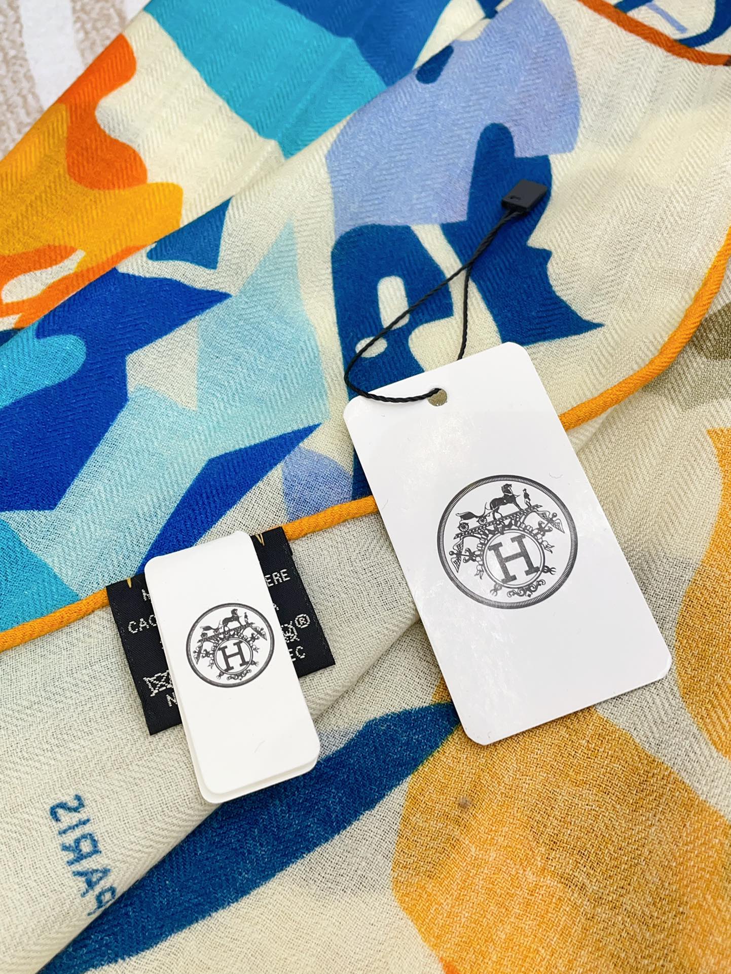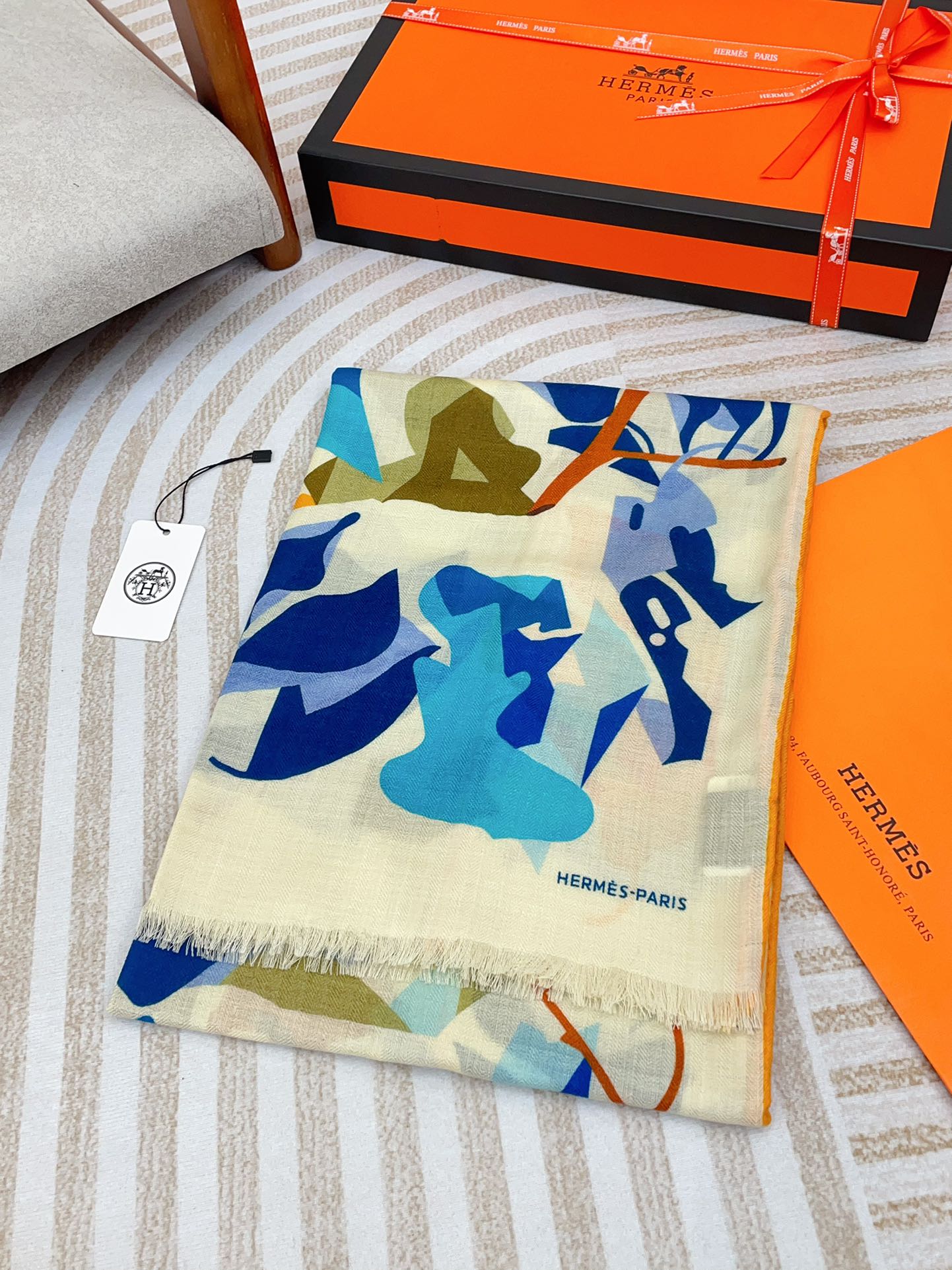 Scarf 180 CM White Colorful Mashmere And Silk 403887