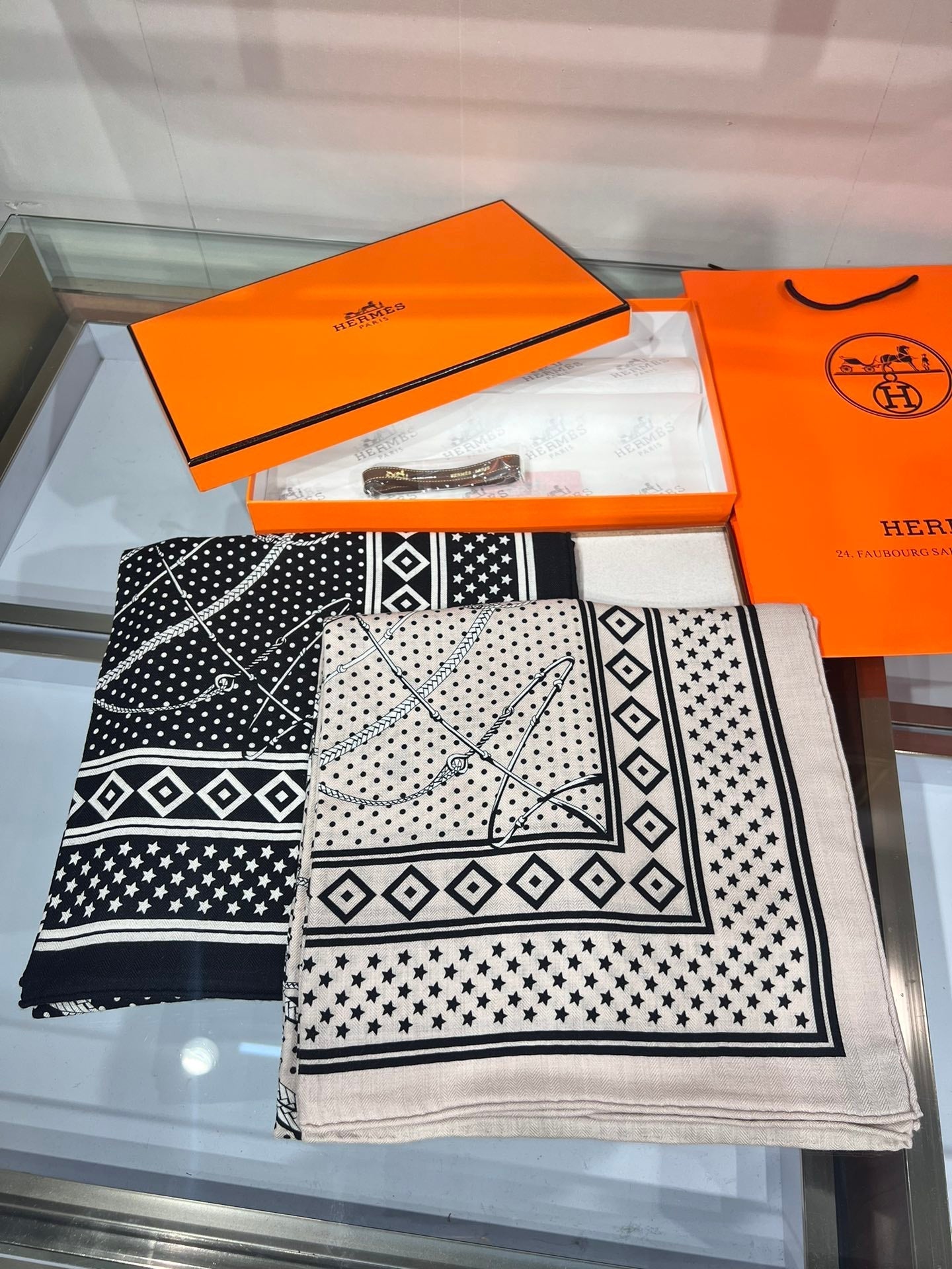 SCARF 140 CM IN BLACK MIX WHITE CASHMERE AND SILK 379767