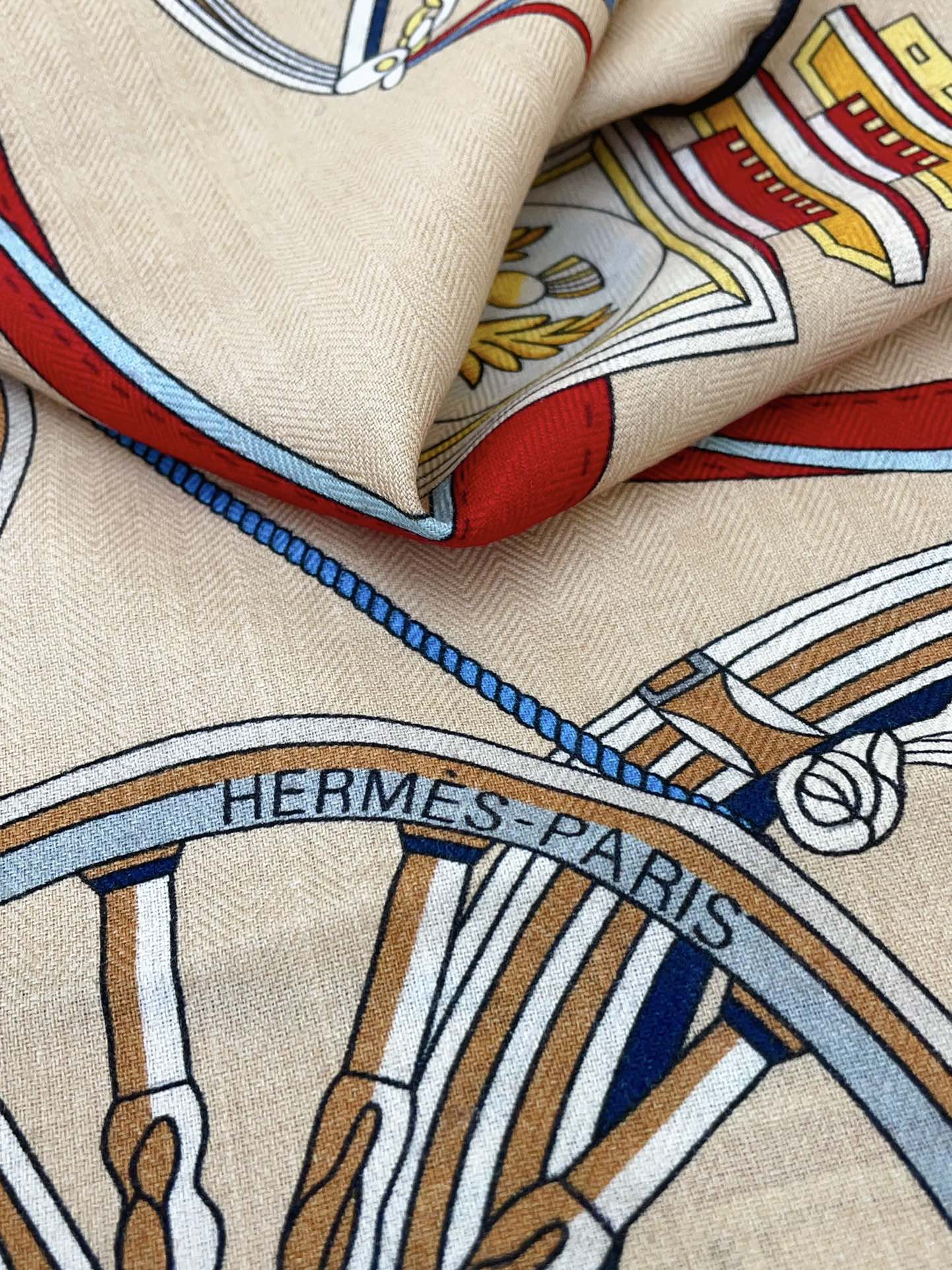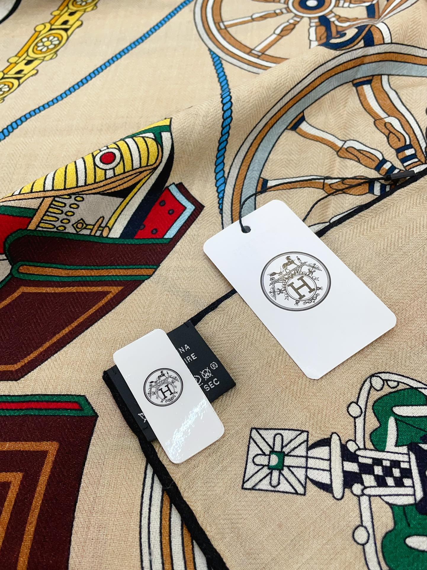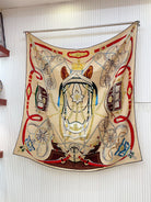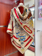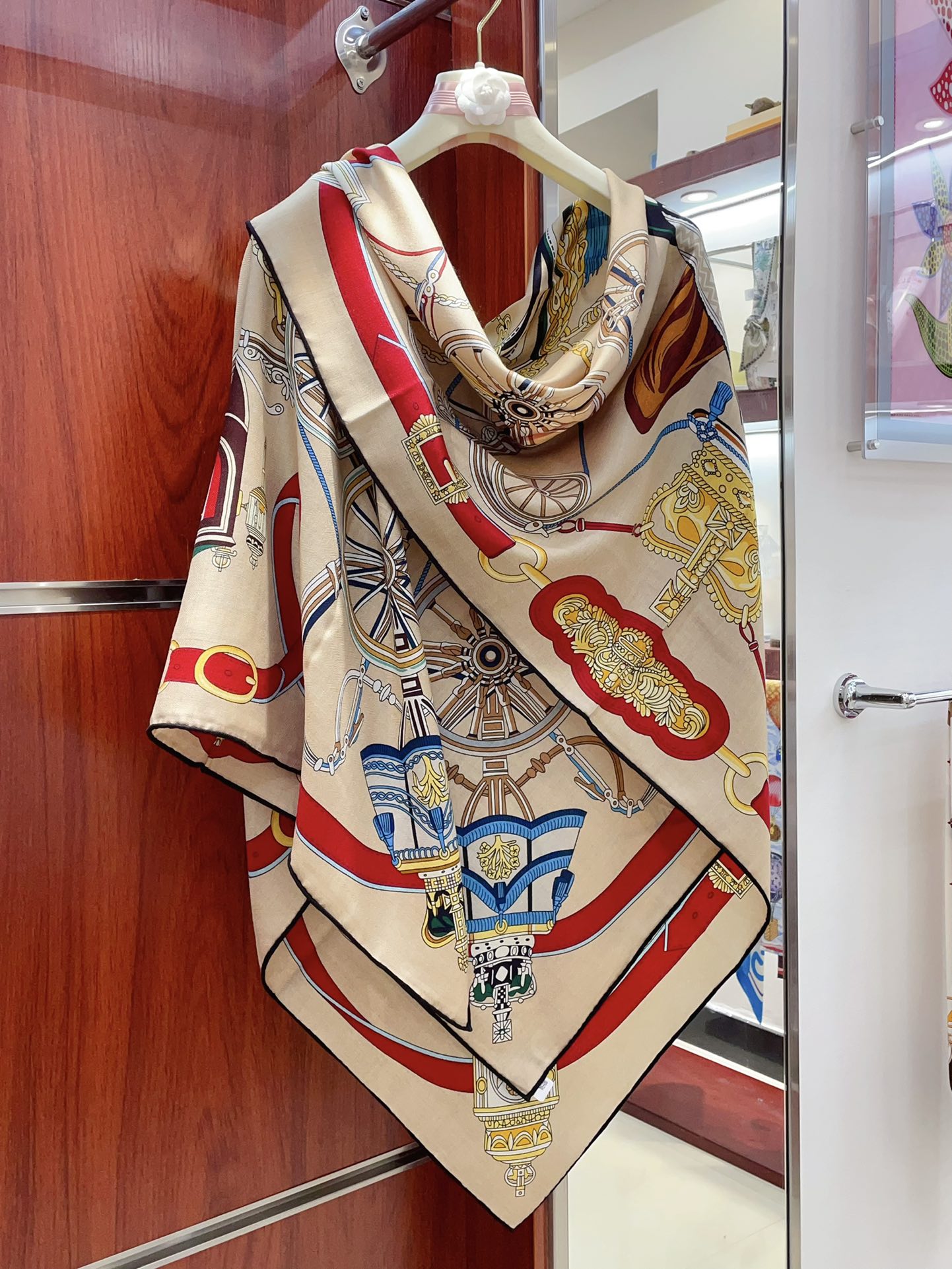 Stately Wheels Scarf 135 CM In Beige Colorful Cashmere And Silk 327468