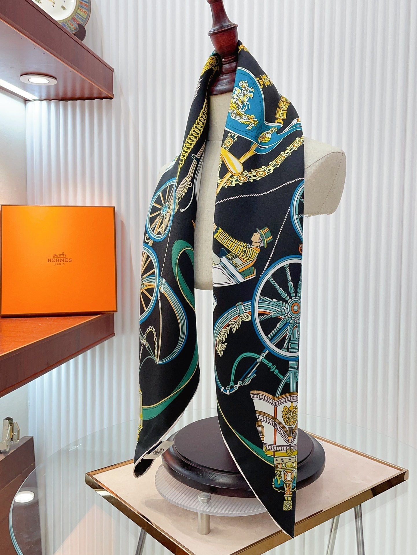 Stately Wheels Scarf 90 CM Black Colorful Silk Twill 312877