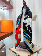 Tea For Two Scarf 90 CM In Black Colorful Silk Twill 296692