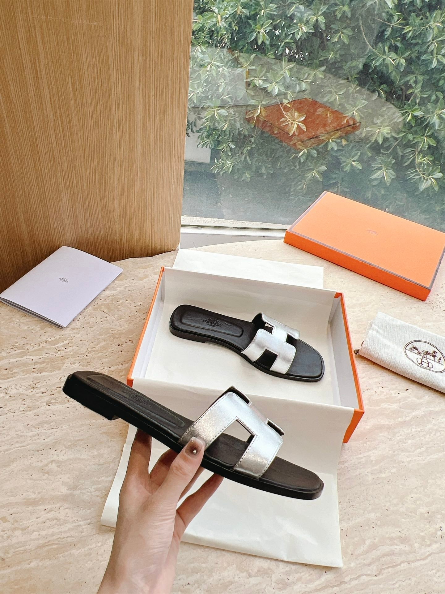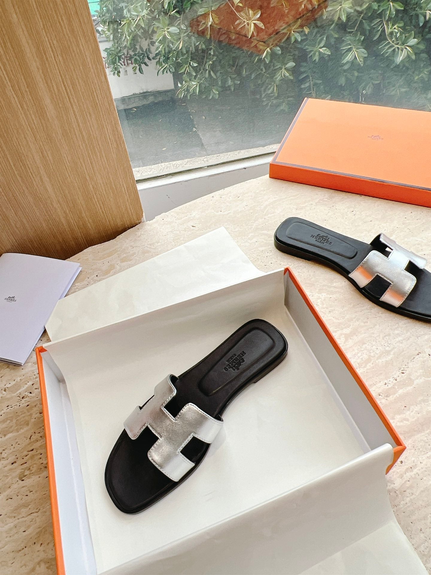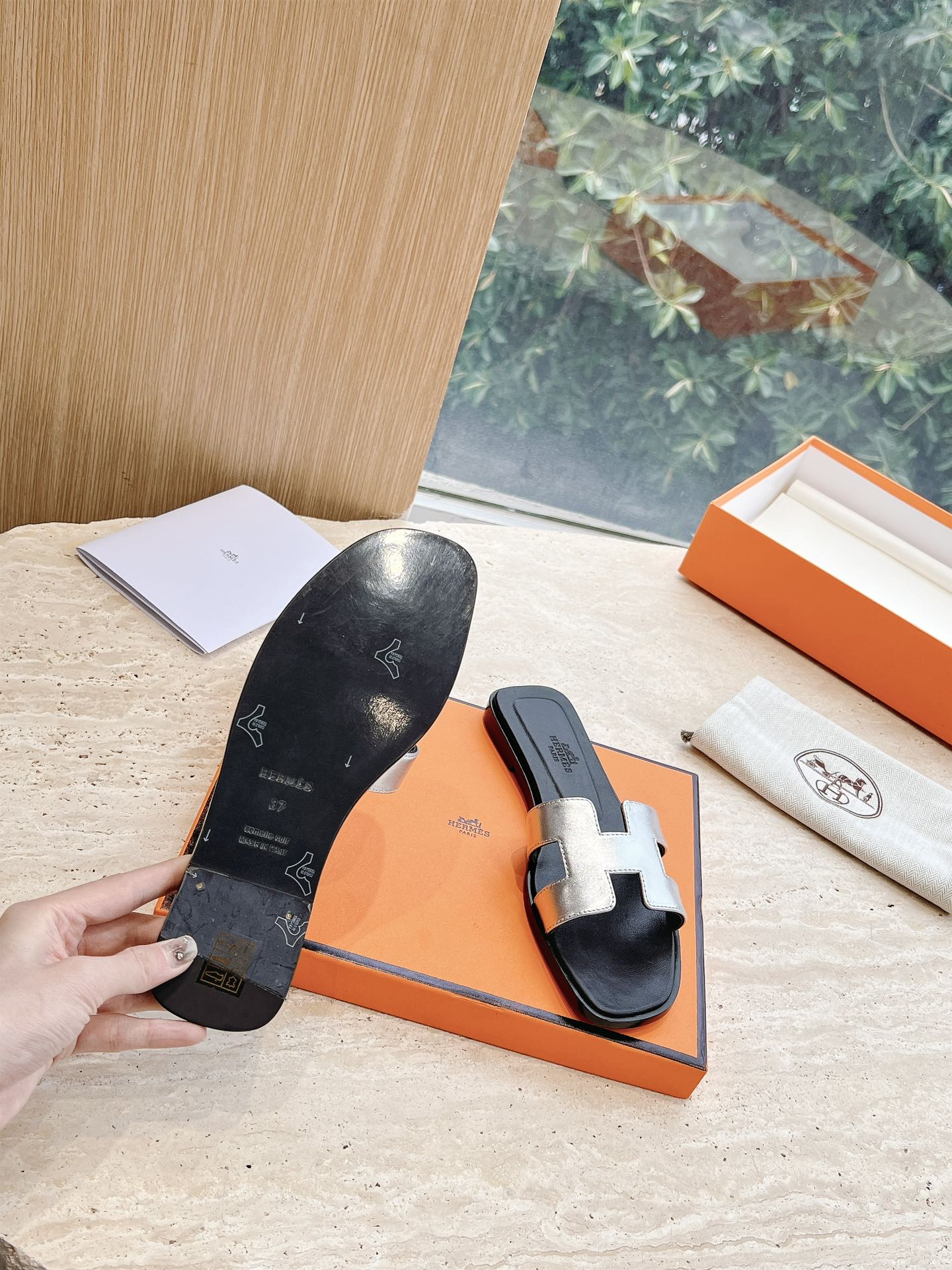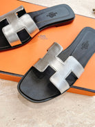 HM 25 Oran Sandal Black Silver Metalic Calfskin