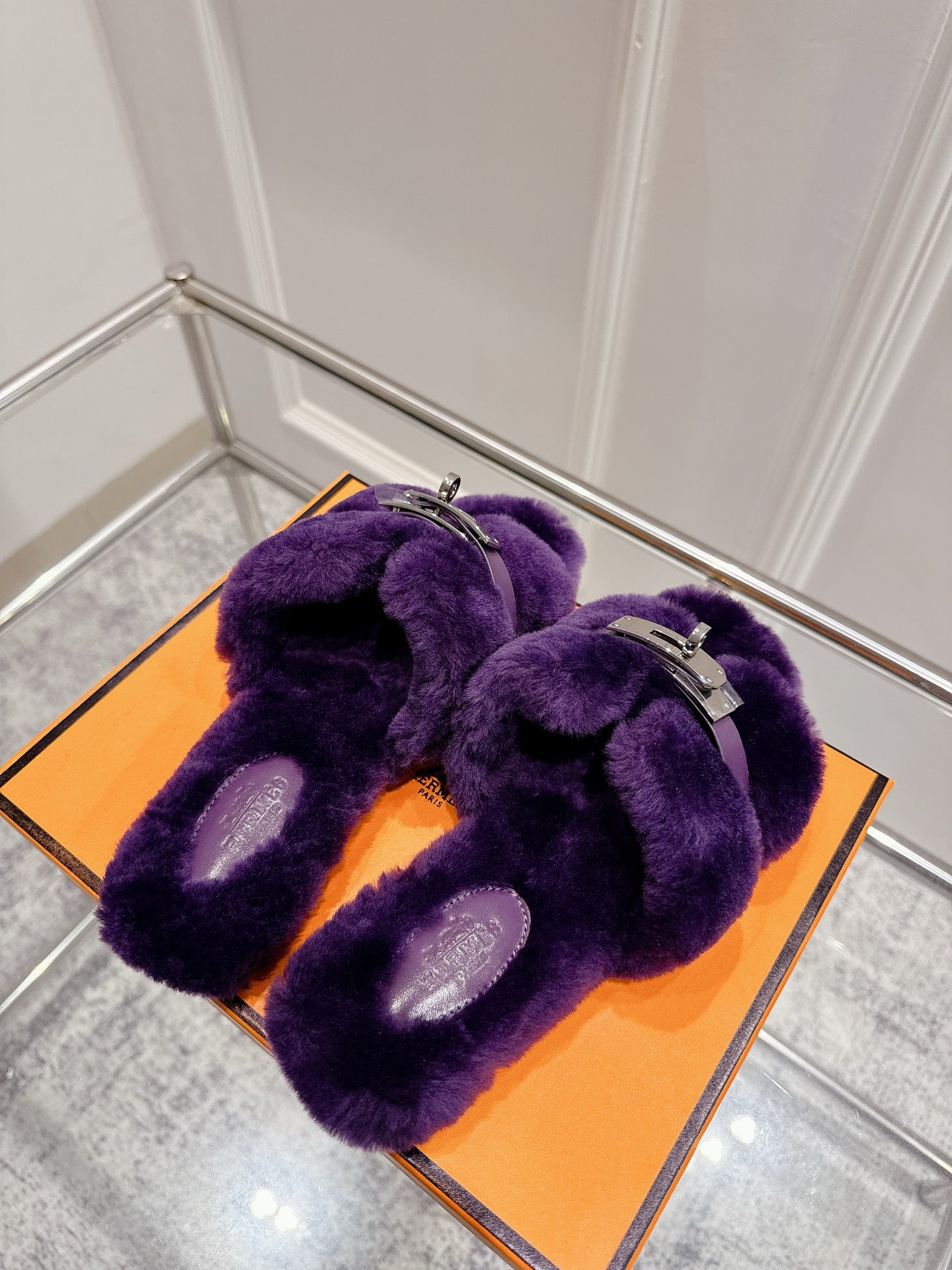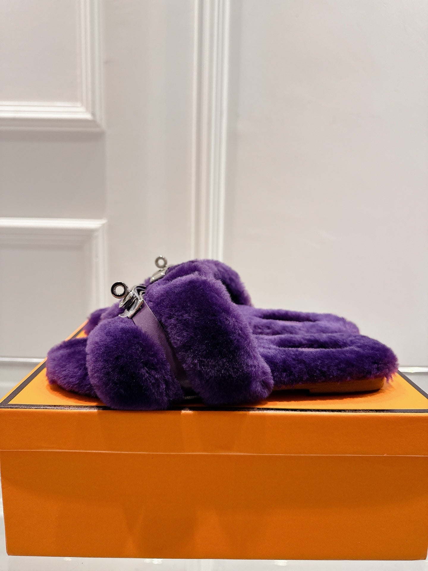 HM Oran slippers sliver buckle purple wool
