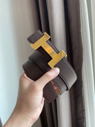 H CONSTANCE BELT 38MM GOLD BUCKLE BROWN CHOCOLATE LEATHER