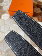 HM CONSTANCE BELT BUCKLE & REVERSIBLE BLACK LEATHER STRAP 38MM SILVER HARDWARE