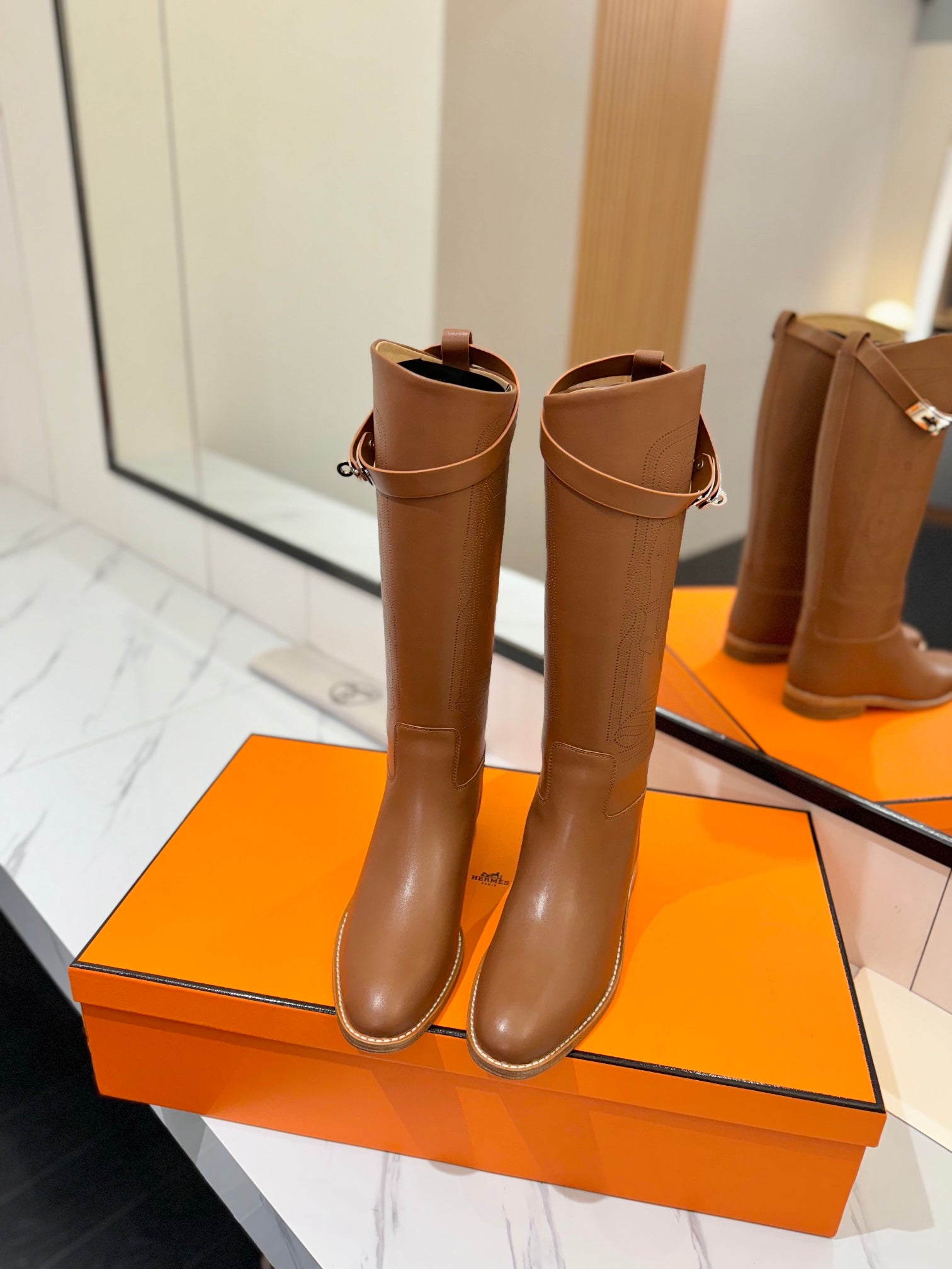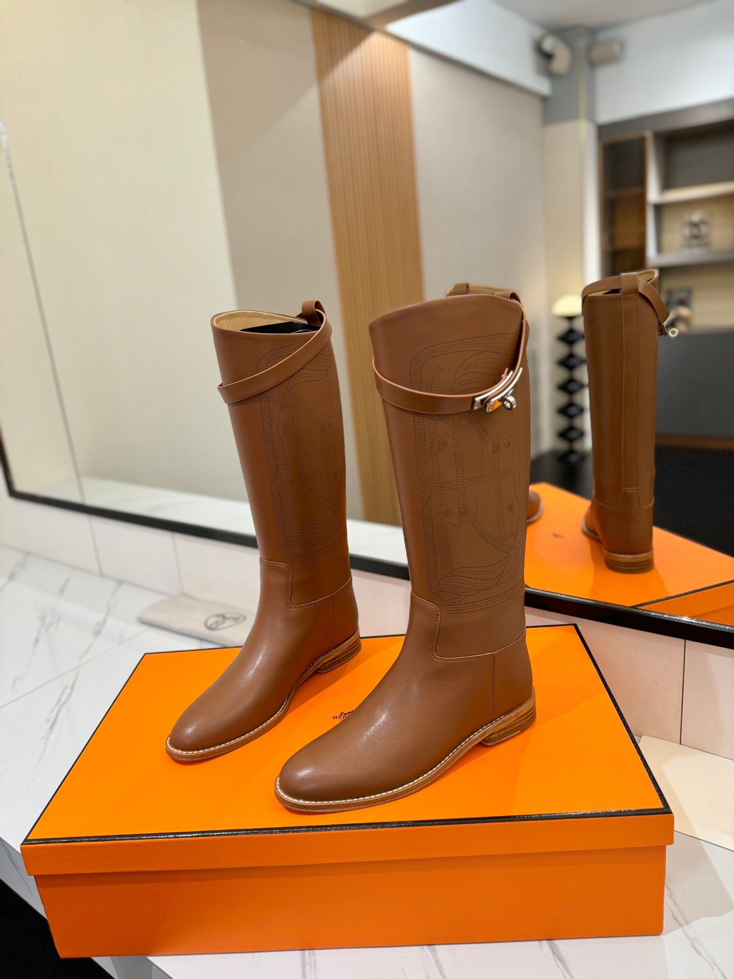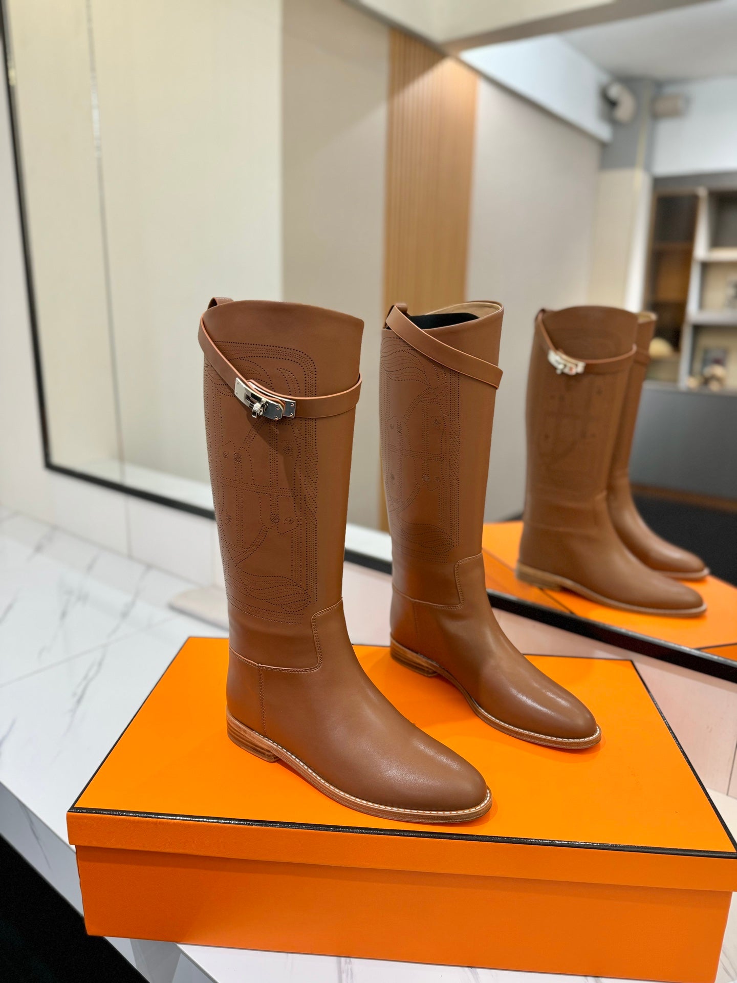HM Jumping Boot 20MM Brown Printed Pattern Cowhide 992356