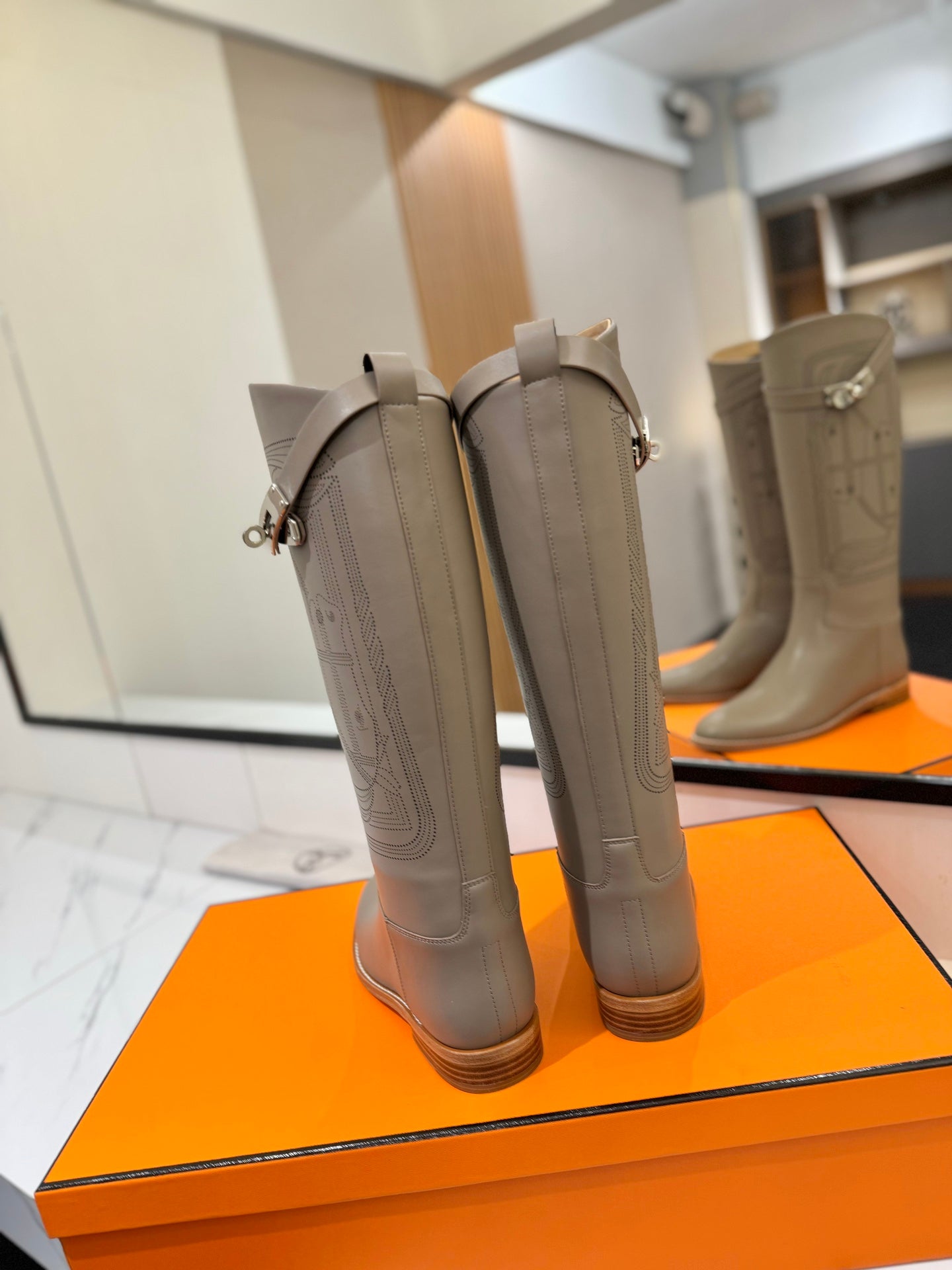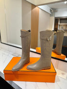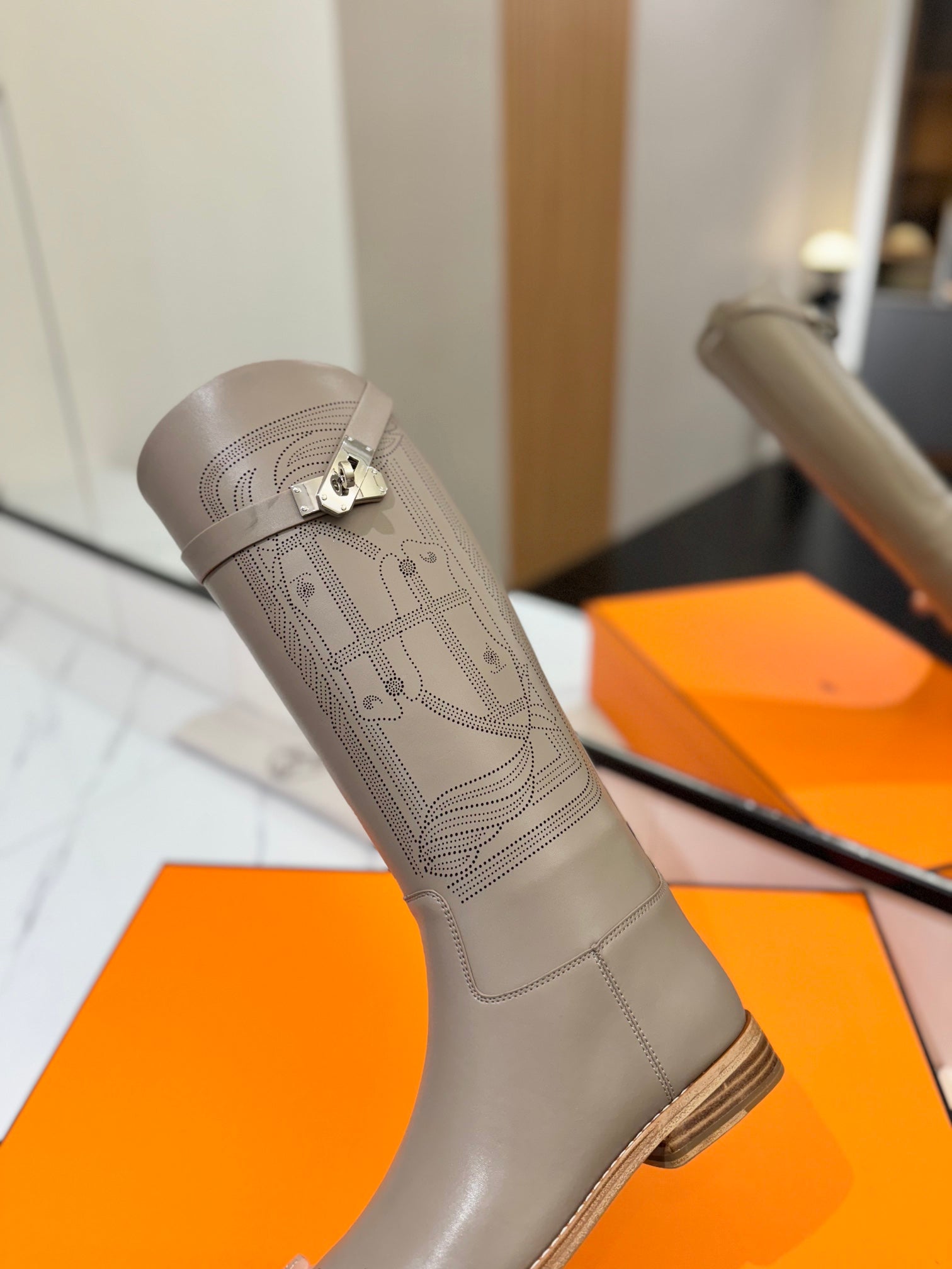 HM Jumping Boot 20MM Grey Beige Printed Pattern Cowhide 992360