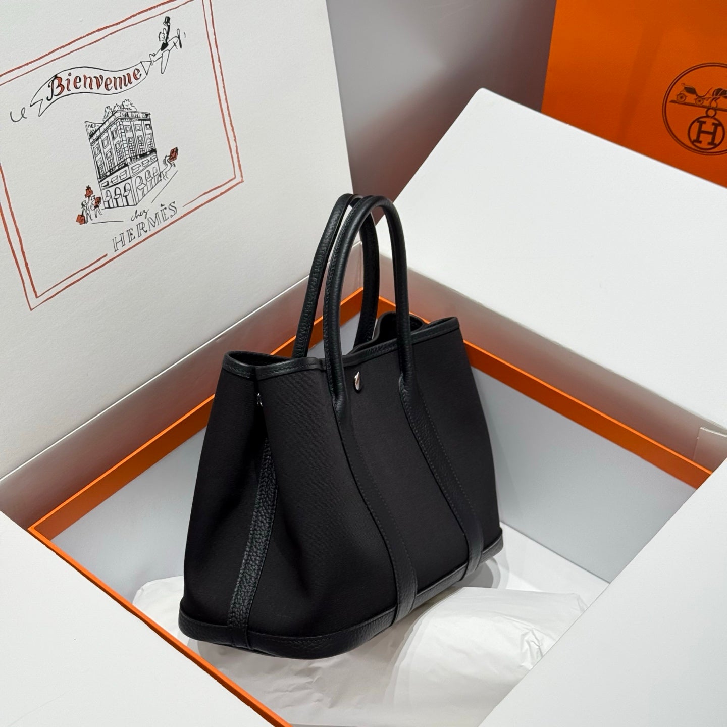 HM Garden Party 30cm Bag Black Togo Black Canvas