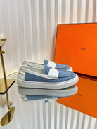 HM Denim Casual Loafer Blue White Cowhide Cloth 317068