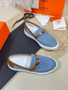 HM Denim Loafer Blue Brown Cowhide Cloth 317047