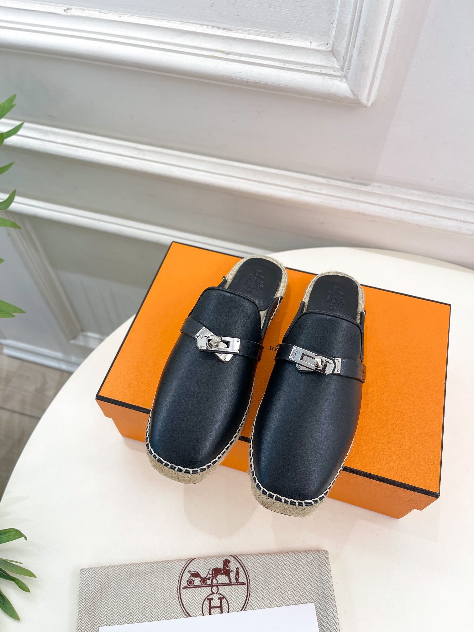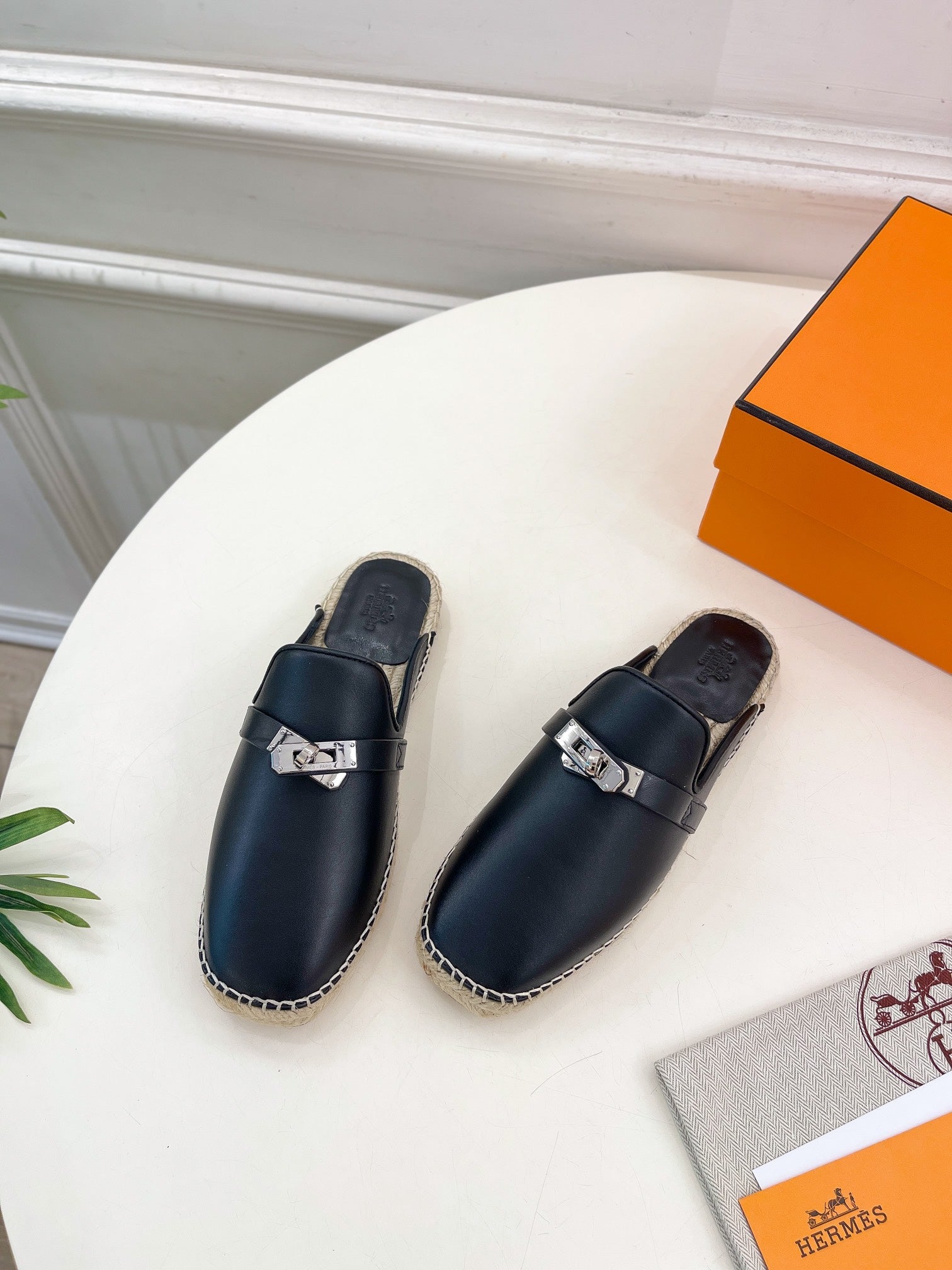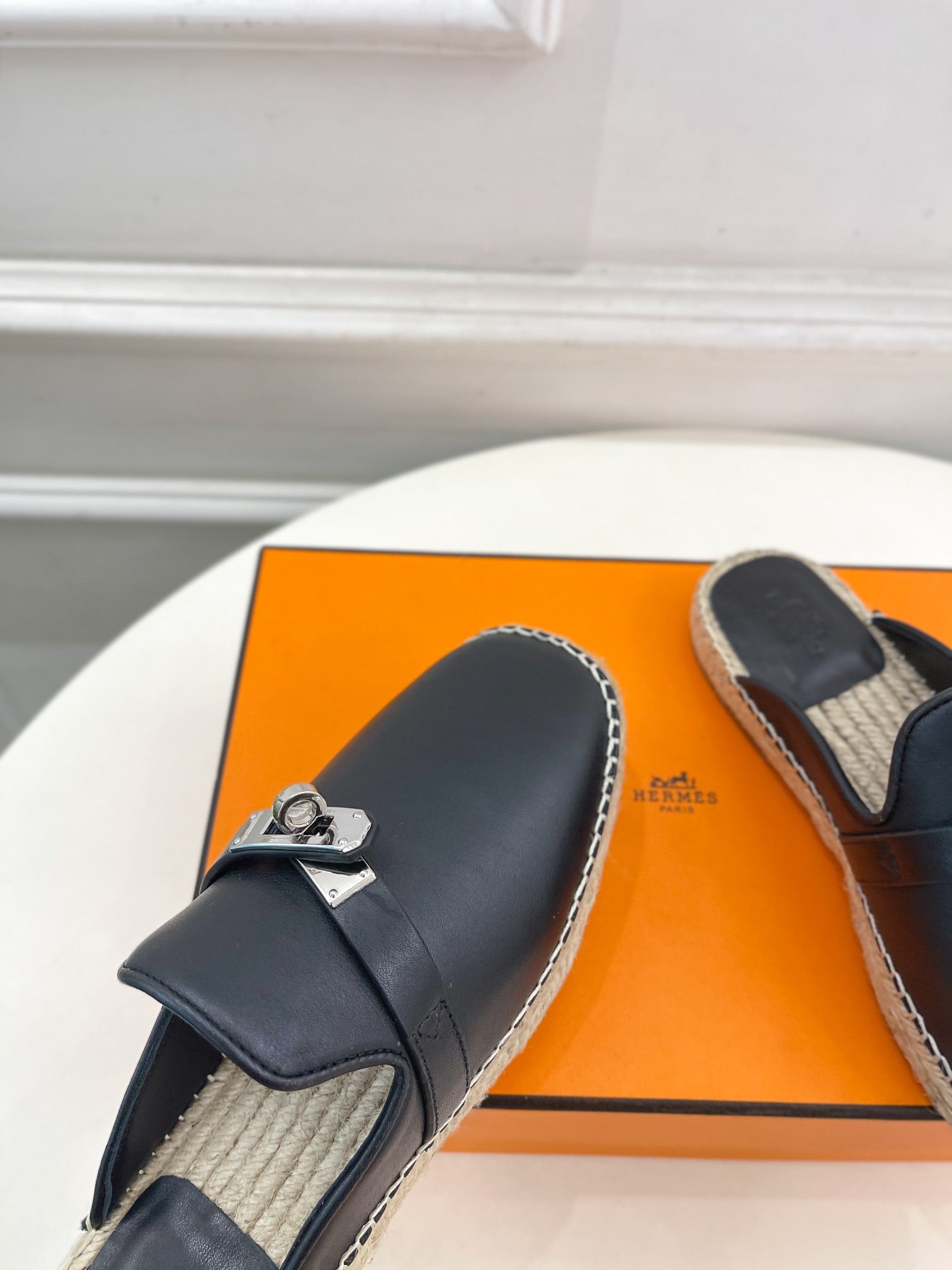 HM Feria Espadrille 20mm Black Calfskin And Handwoven Hemp Rope 967988