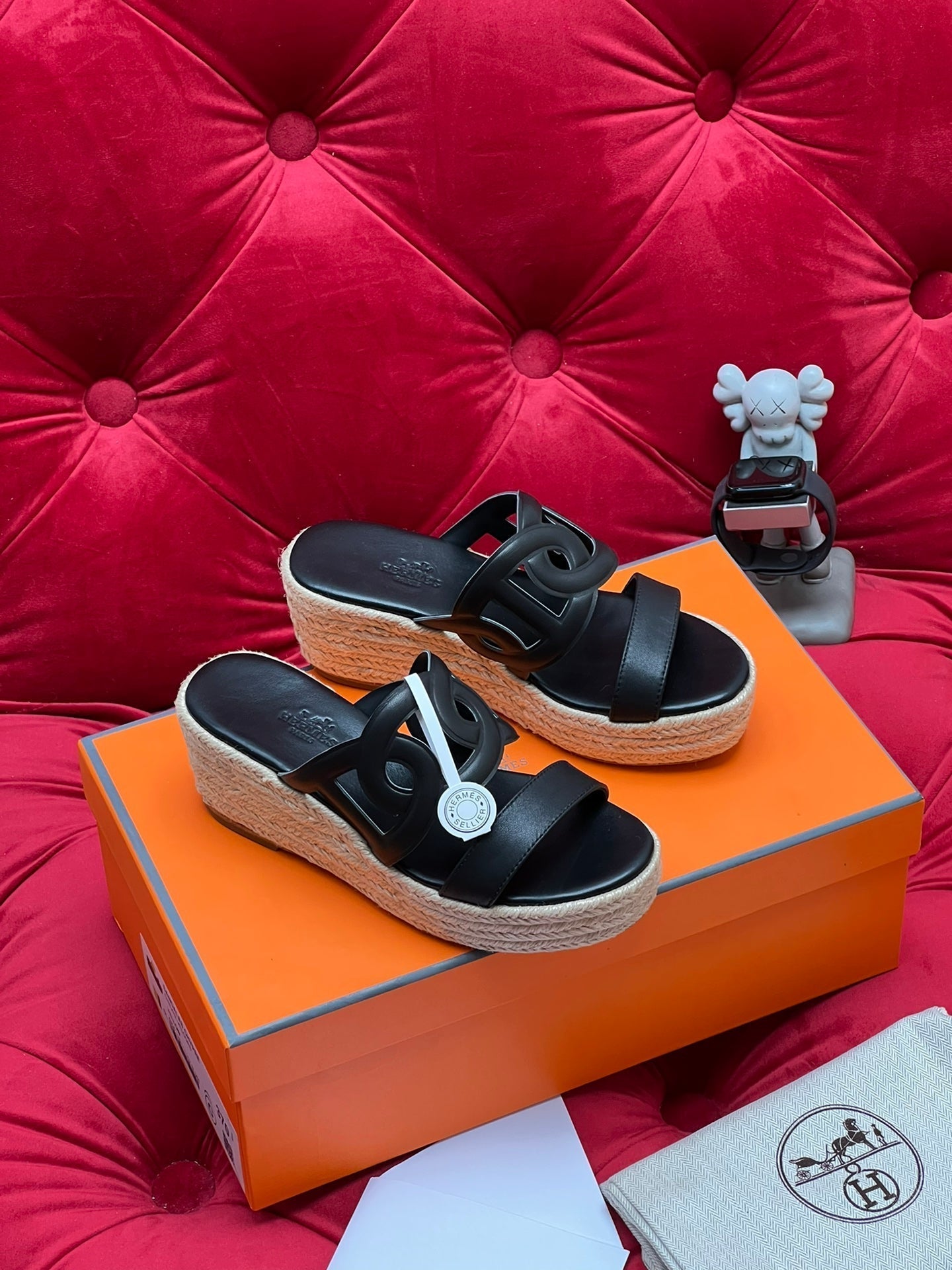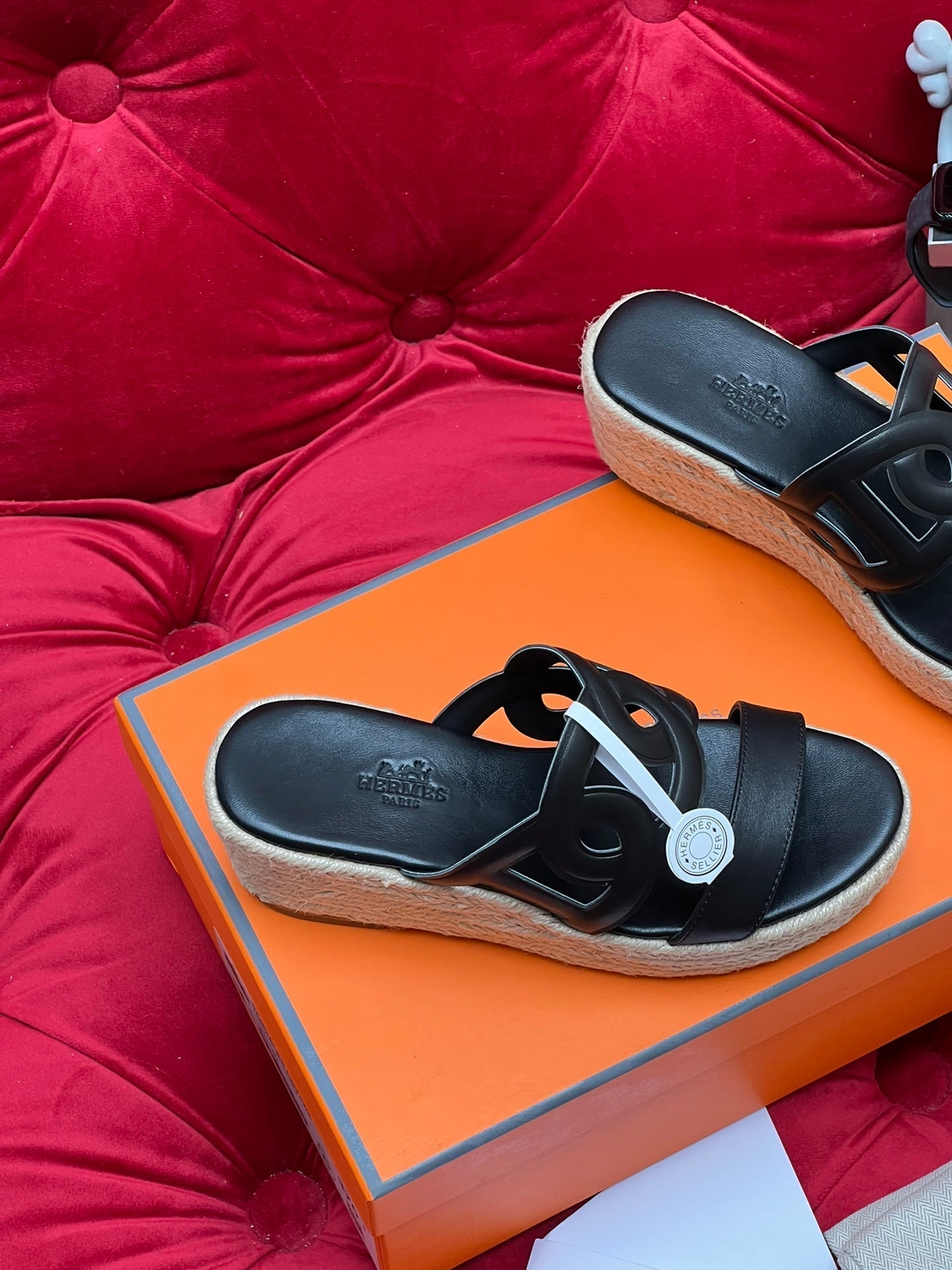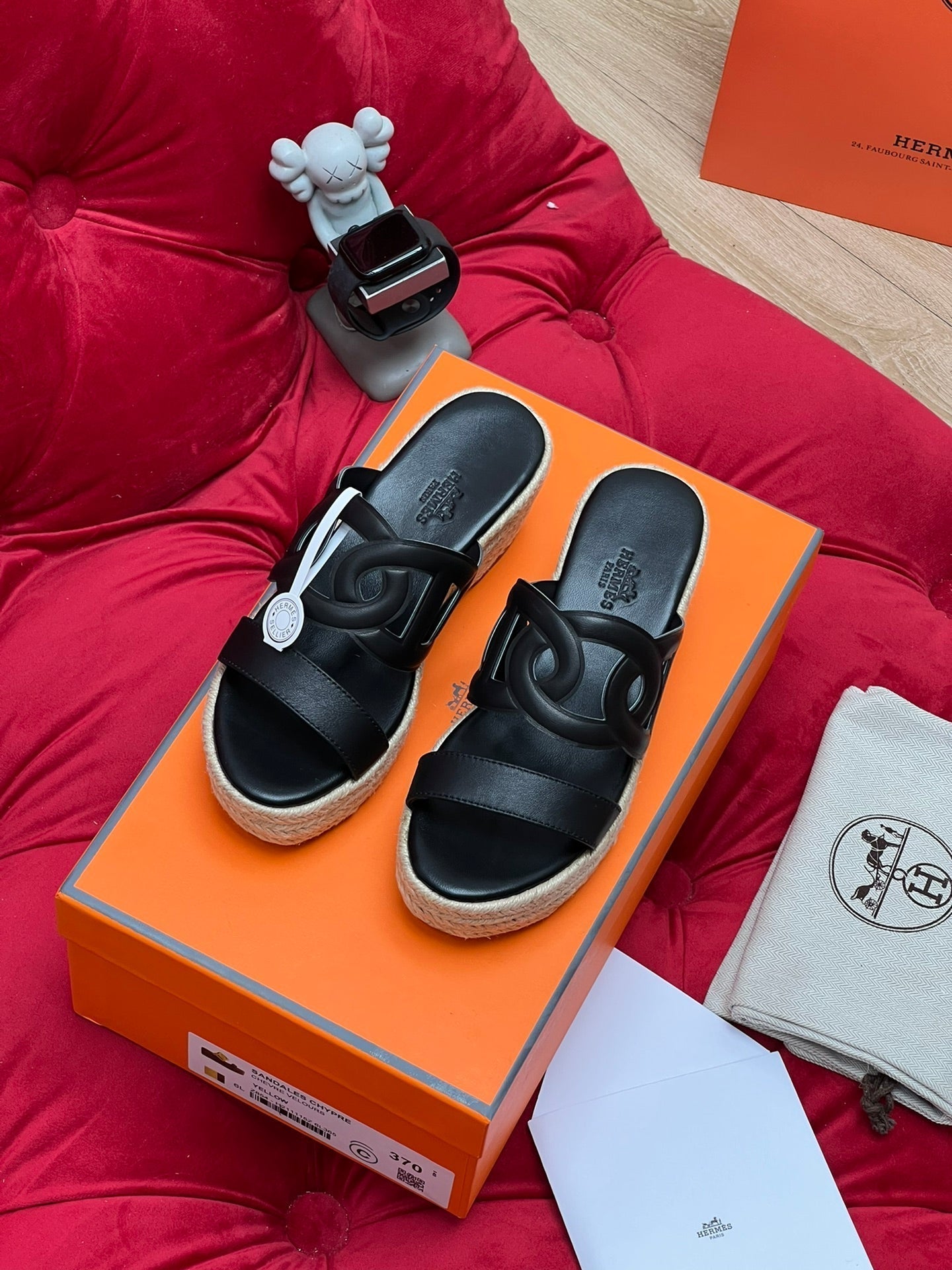 HM Lthea Espadrille Black Calfskin And Jute Rope 969498