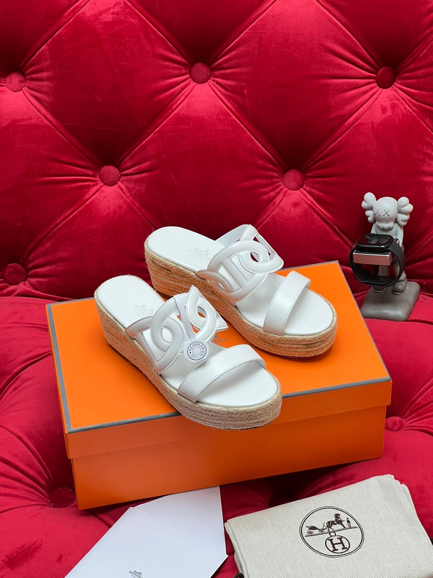 HM Lthea Espadrille White Calfskin And Jute Rope 969494