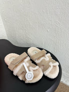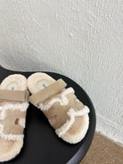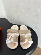 HM Chypre Sandal In Light Brown Mix White Suede And Fleece Lining 961139