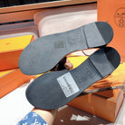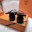 • Material: Sandal in Clafskin with straight cut edges, "H" cut-out detail and thin ankle strap.