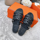 BLACK STRAW SOLE SLIPPERS BLACK LAMBSKIN
