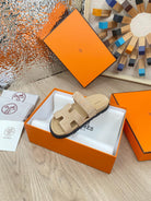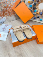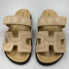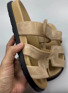 chypre sandal beige suede calfskin white thread embroidered