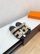 CHYPRE SANDAL LIGHT GRAY SUEDE WITH H BUCKLE