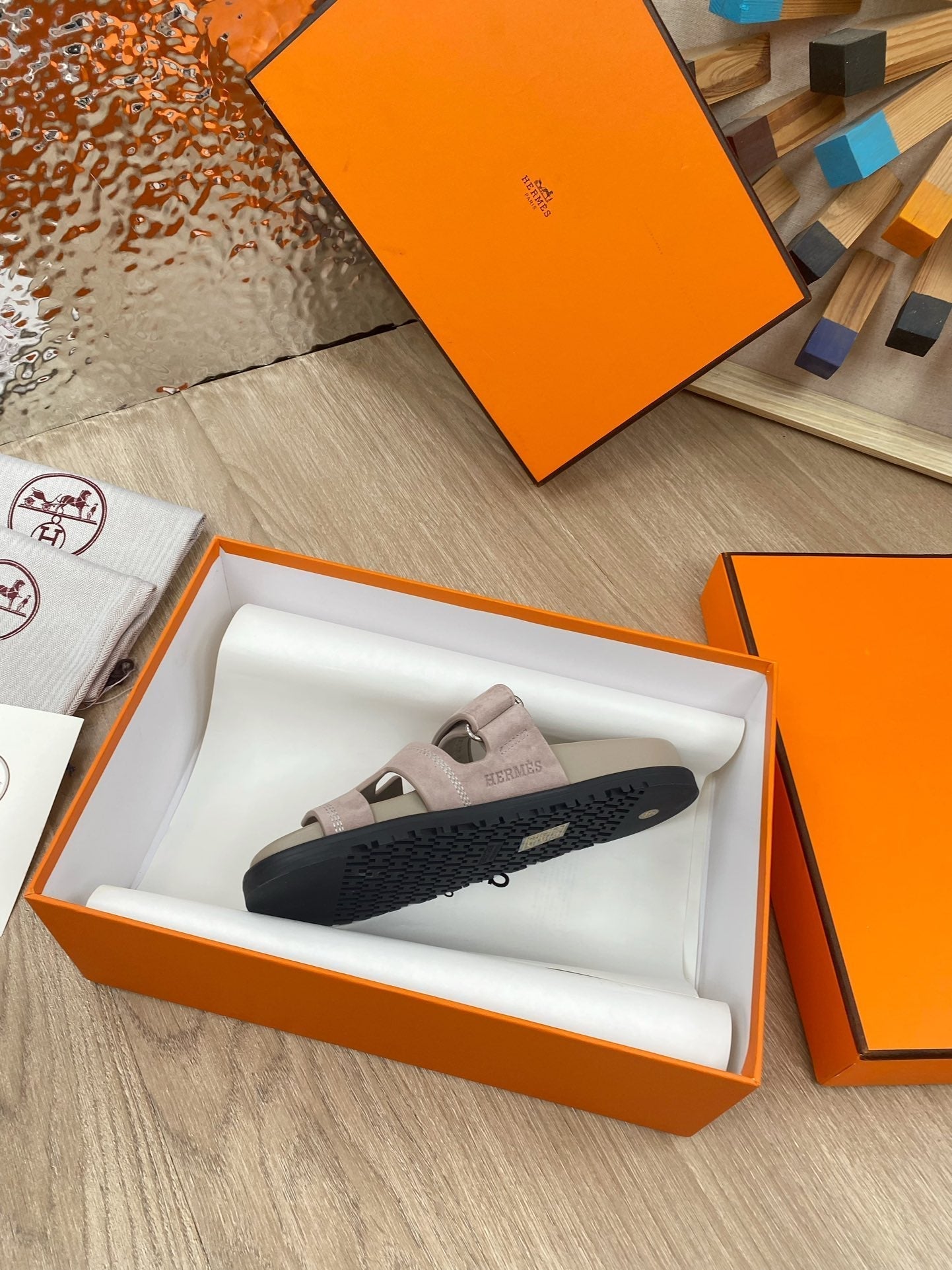 chypre sandal pinkish beige suede calfskin white thread embroidered