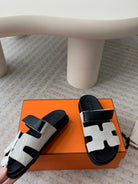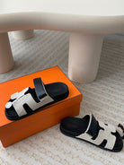 chypre sandal white canvas black calfskin