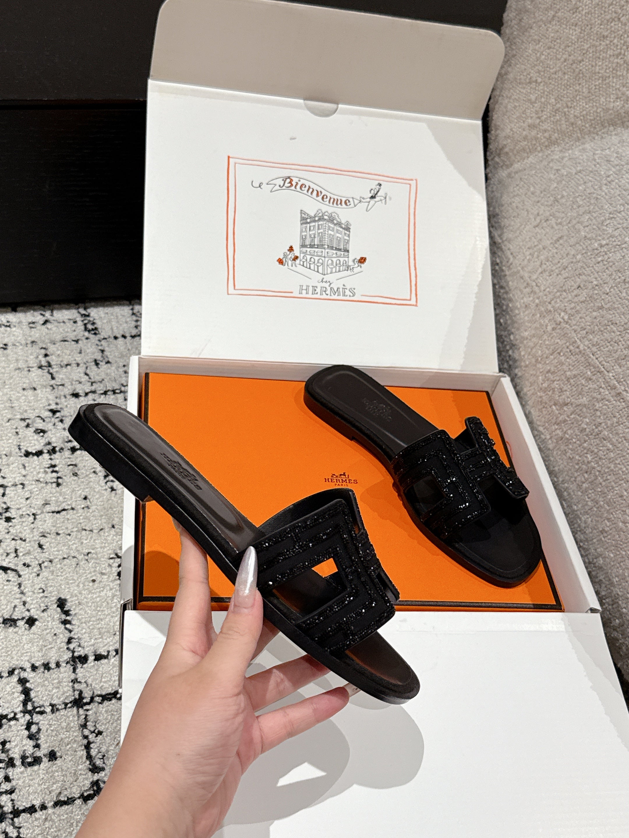 HM 25 Oran Sandal Black Suede Black H Crystal
