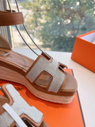 HM 25C Elda espadrille Brown Mix White Denim and Goatskin 202834