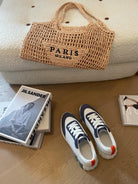HM Bouncing 35 Sneakers White Canvas Blue Suede Goatskin Orange H Seafoam