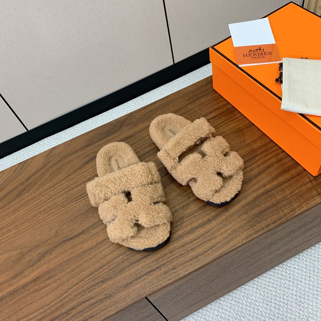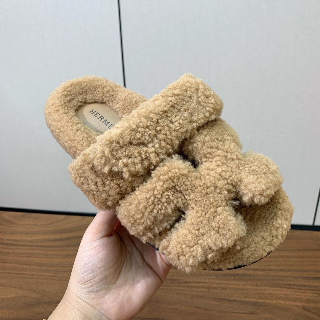 HM Chypre Sandal In Dark Beige Lamb Wool 984181