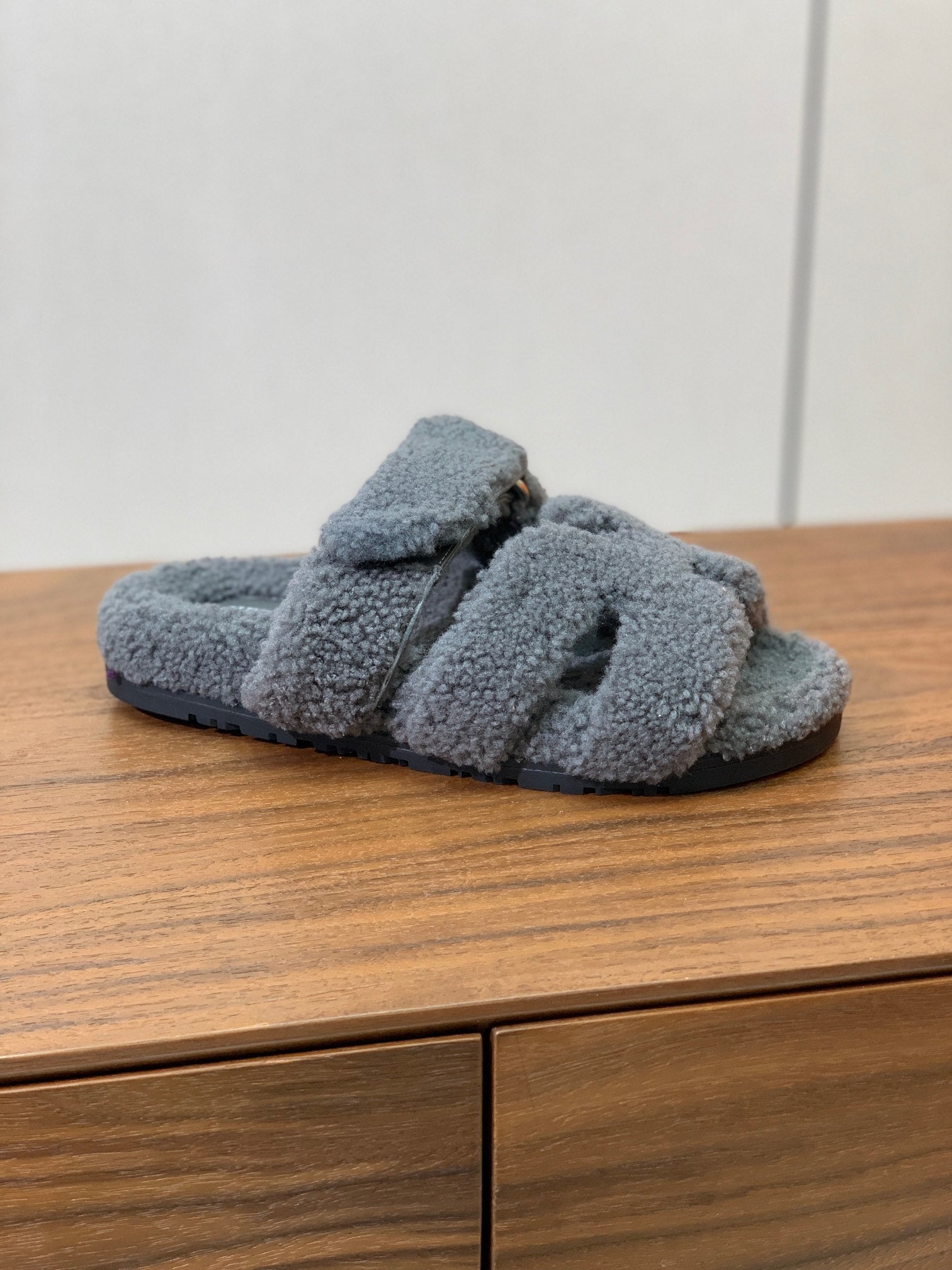 HM Chypre Sandal In Dark Grey Lamb Wool 984183
