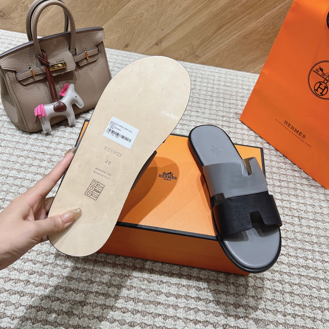 HM Izmir Sandals Gray Black Calfskin 294940