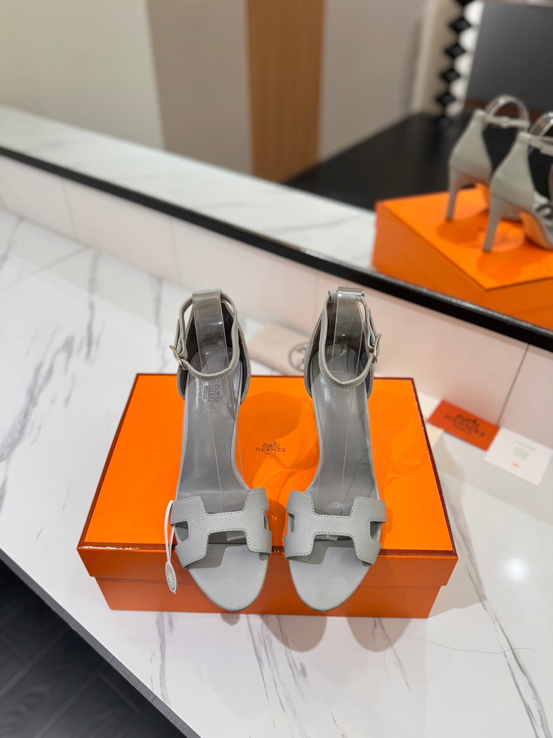 HM Joy Heeled Sandals Gray Cowhide 294898