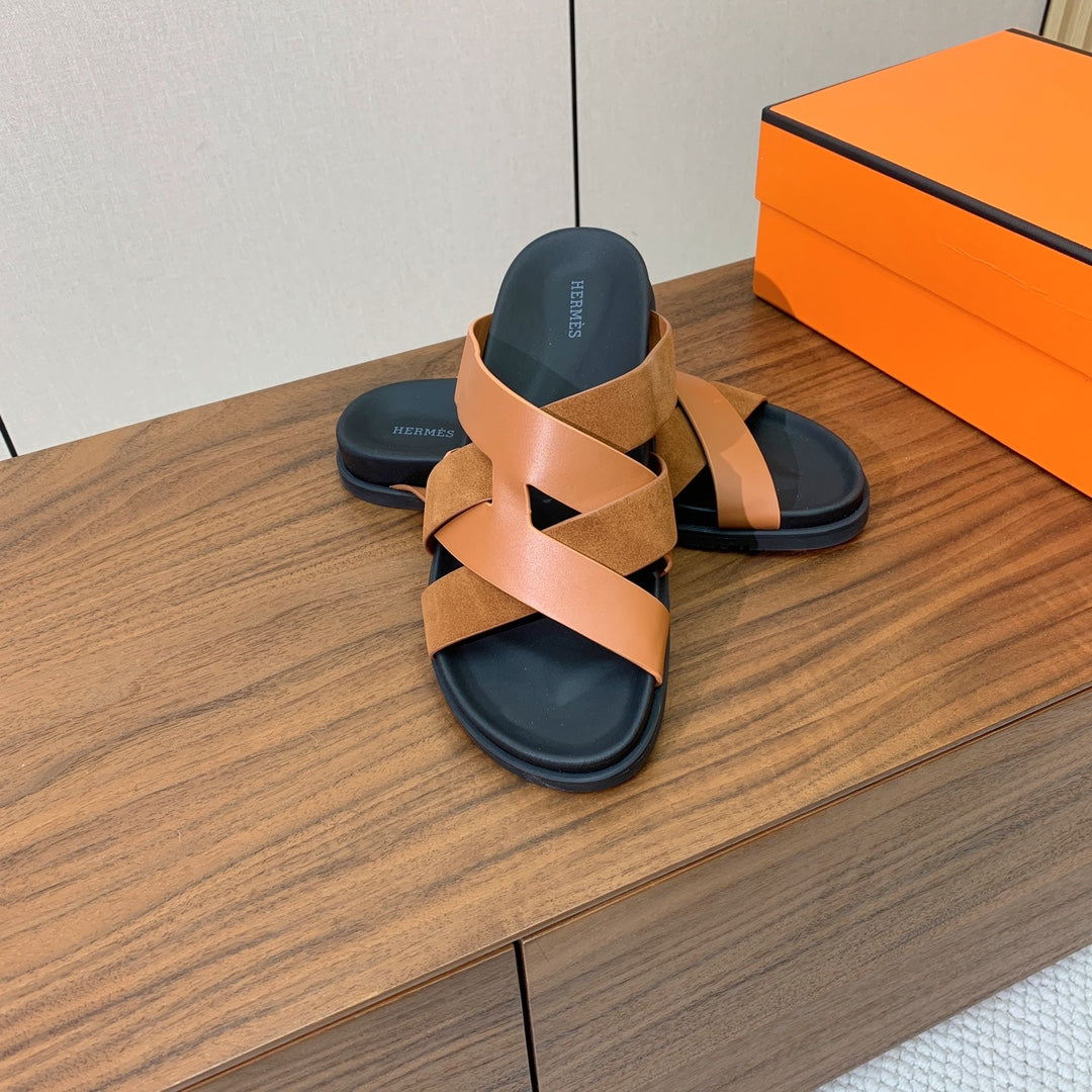 HM Kazimir Sandal Brown Black Suede Calfskin 294039