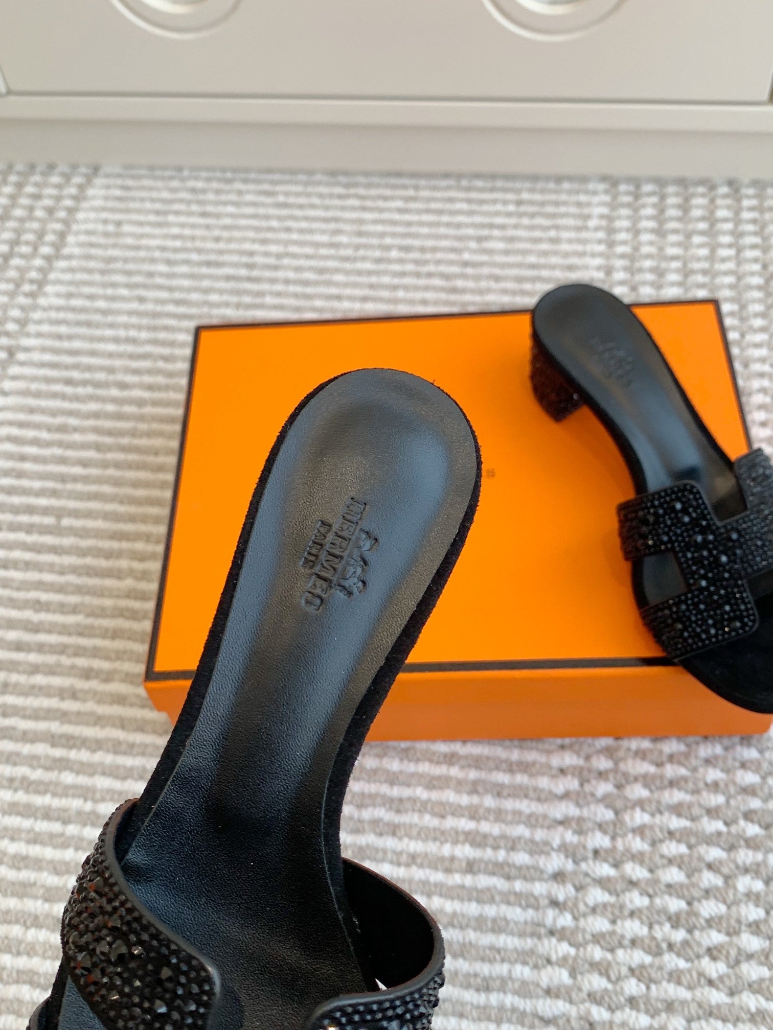 HM Oasis Sandal 50mm Black Suede Goatskin 291392