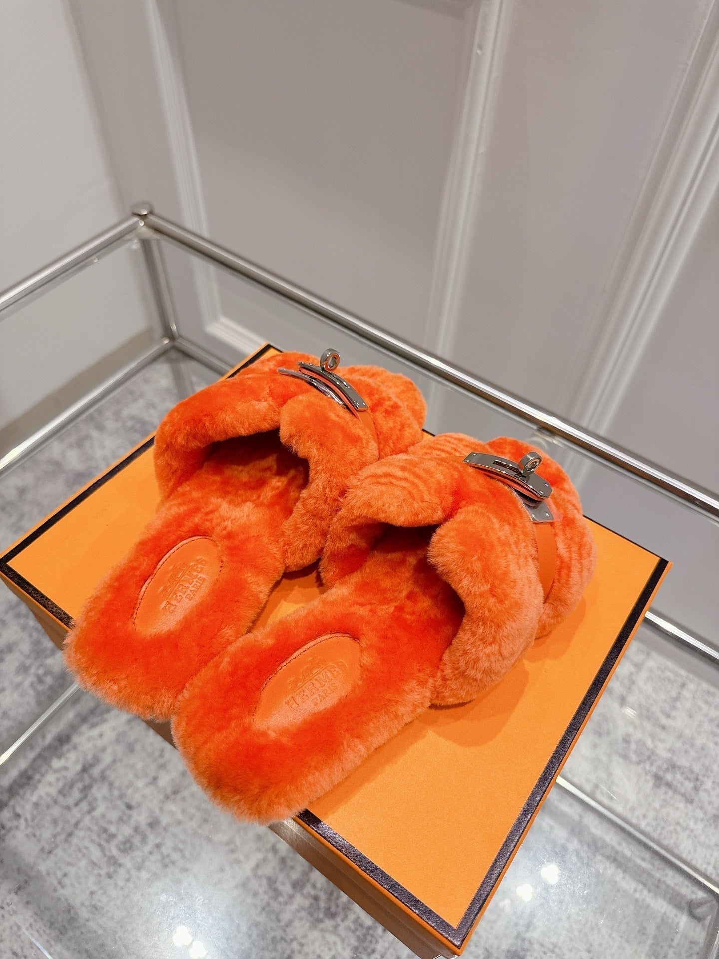 HM Oran slippers sliver buckle orange wool