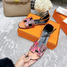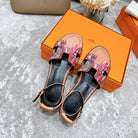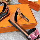 SANTORINI SANDAL BLACK MIX LIGHT PINK CALFSKIN WITH PATTERN