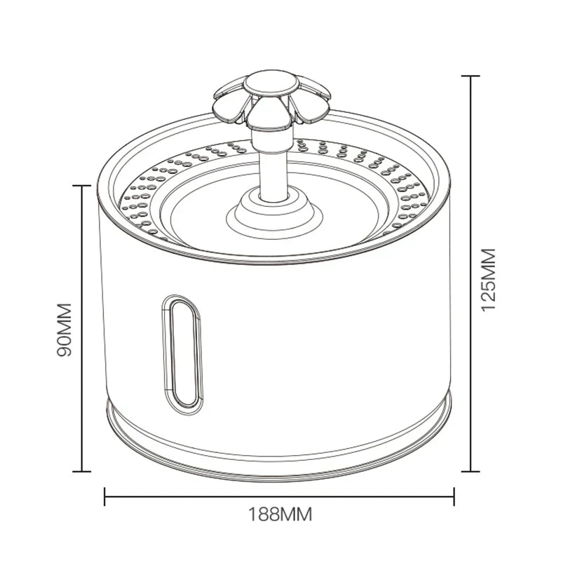 La Fontaine à Eau avec Jet d'eau en Forme de Fleur pour Chat est un accessoire pratique et ludique qui permet à votre chat de toujours avoir de l'eau propre et fraîche.