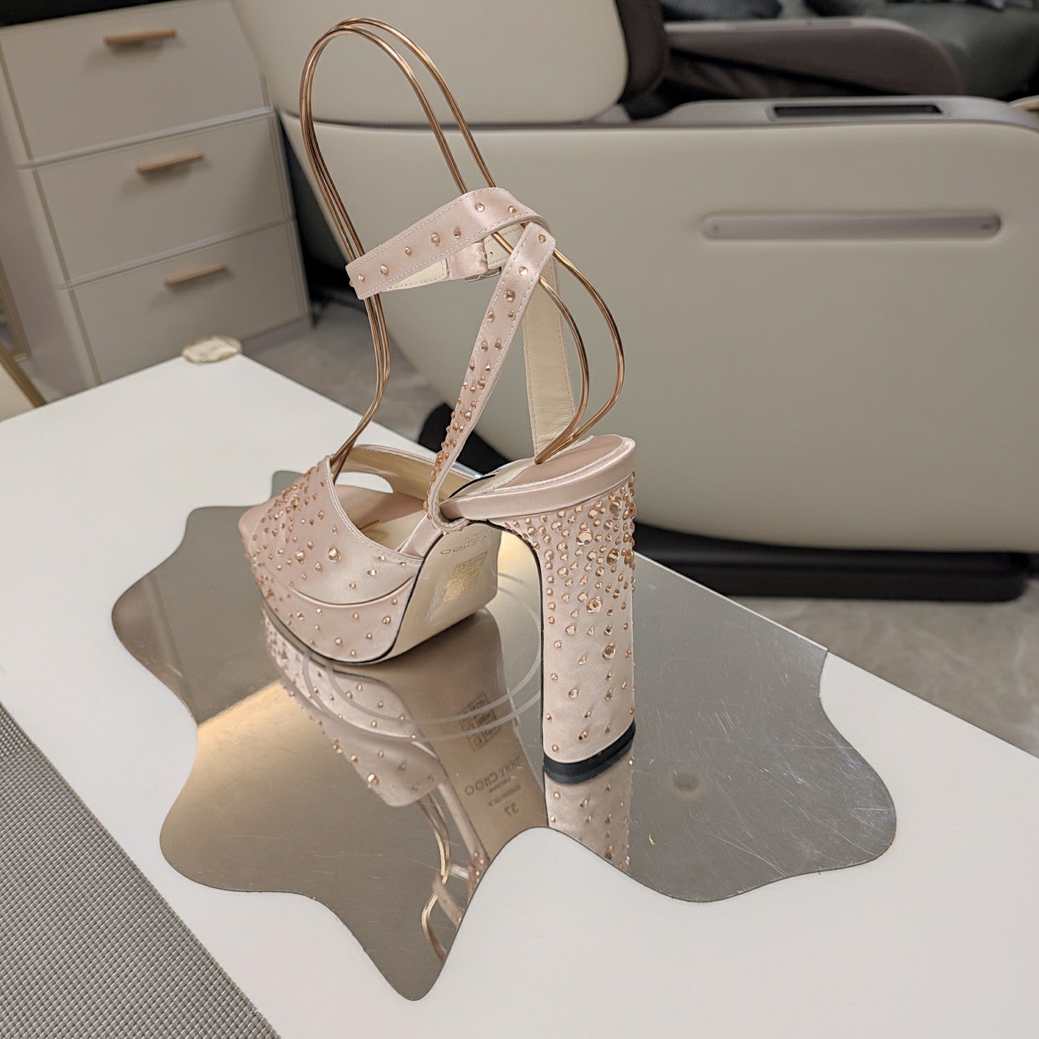 Jimmy 25 Platform Sandal Heels Lady Pink Silk Satin 240012