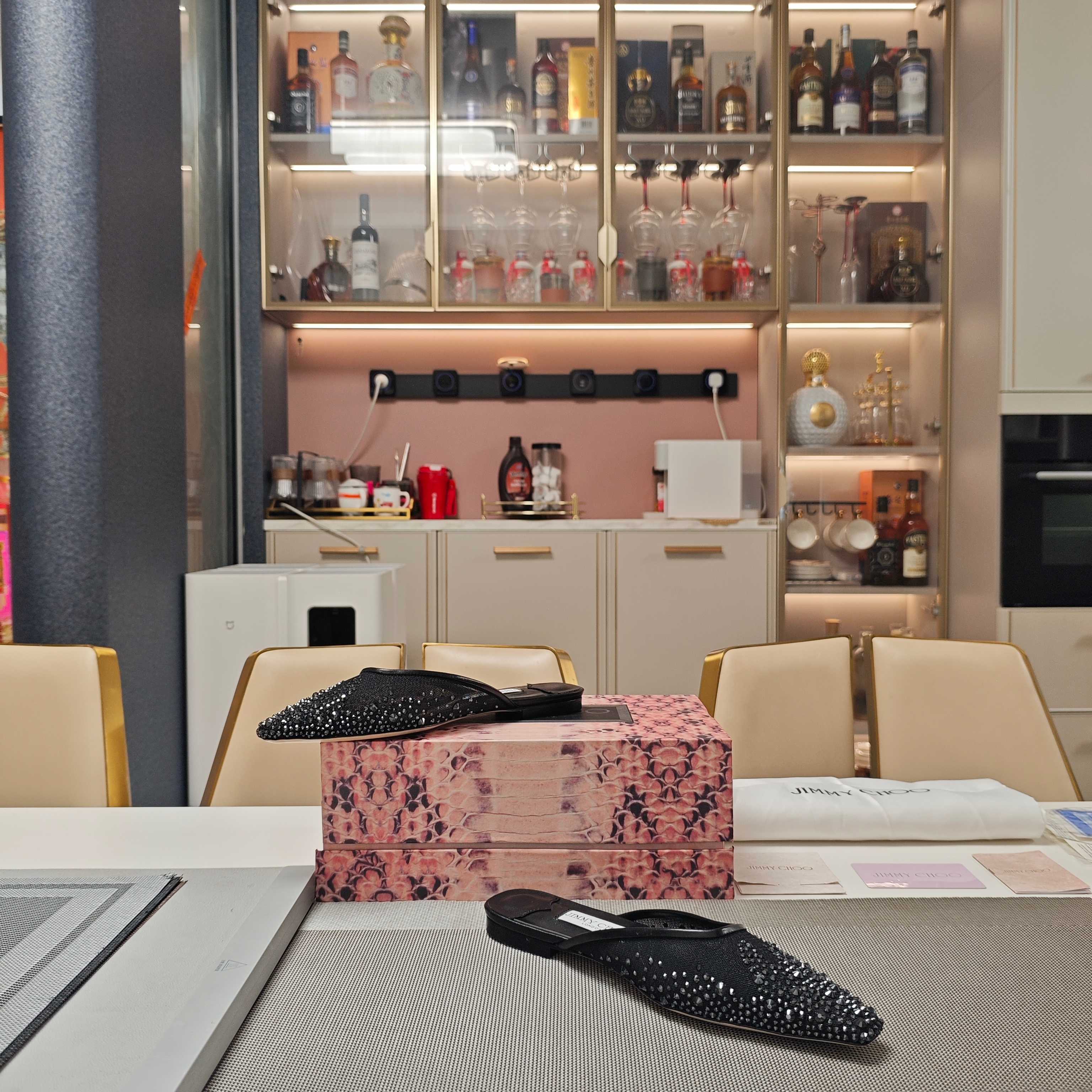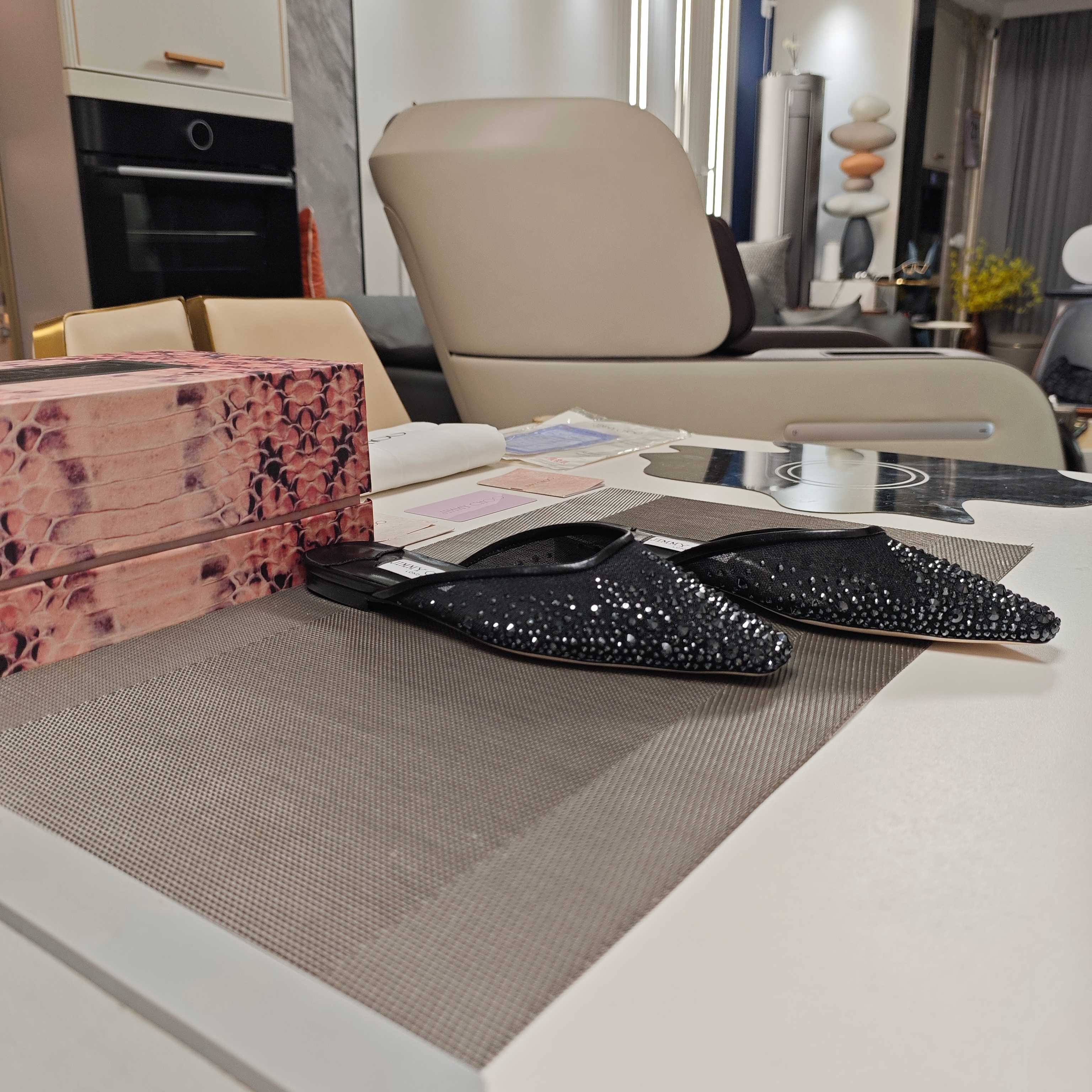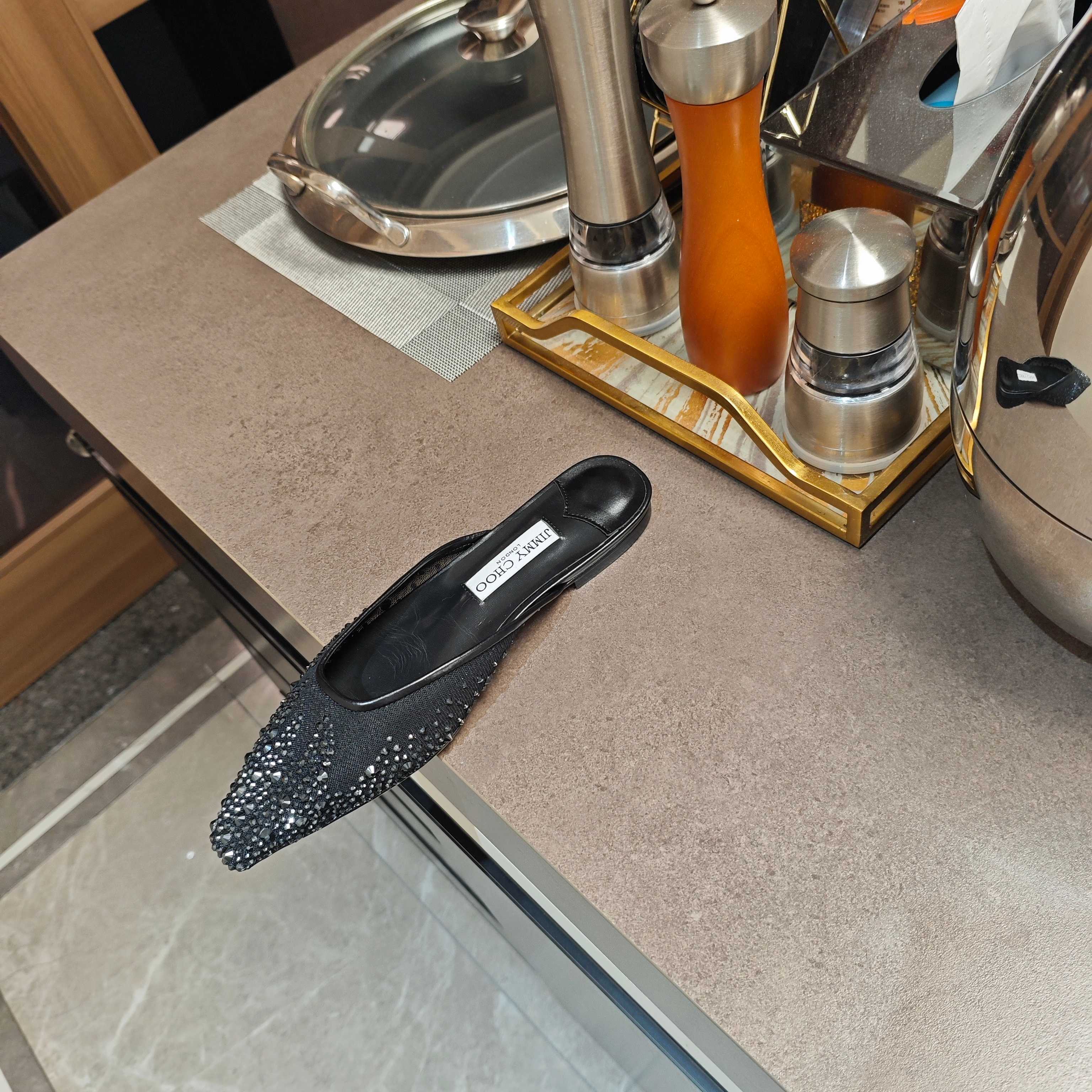 Jimmy 25 Mule Flats Black Mesh Gauze 240055