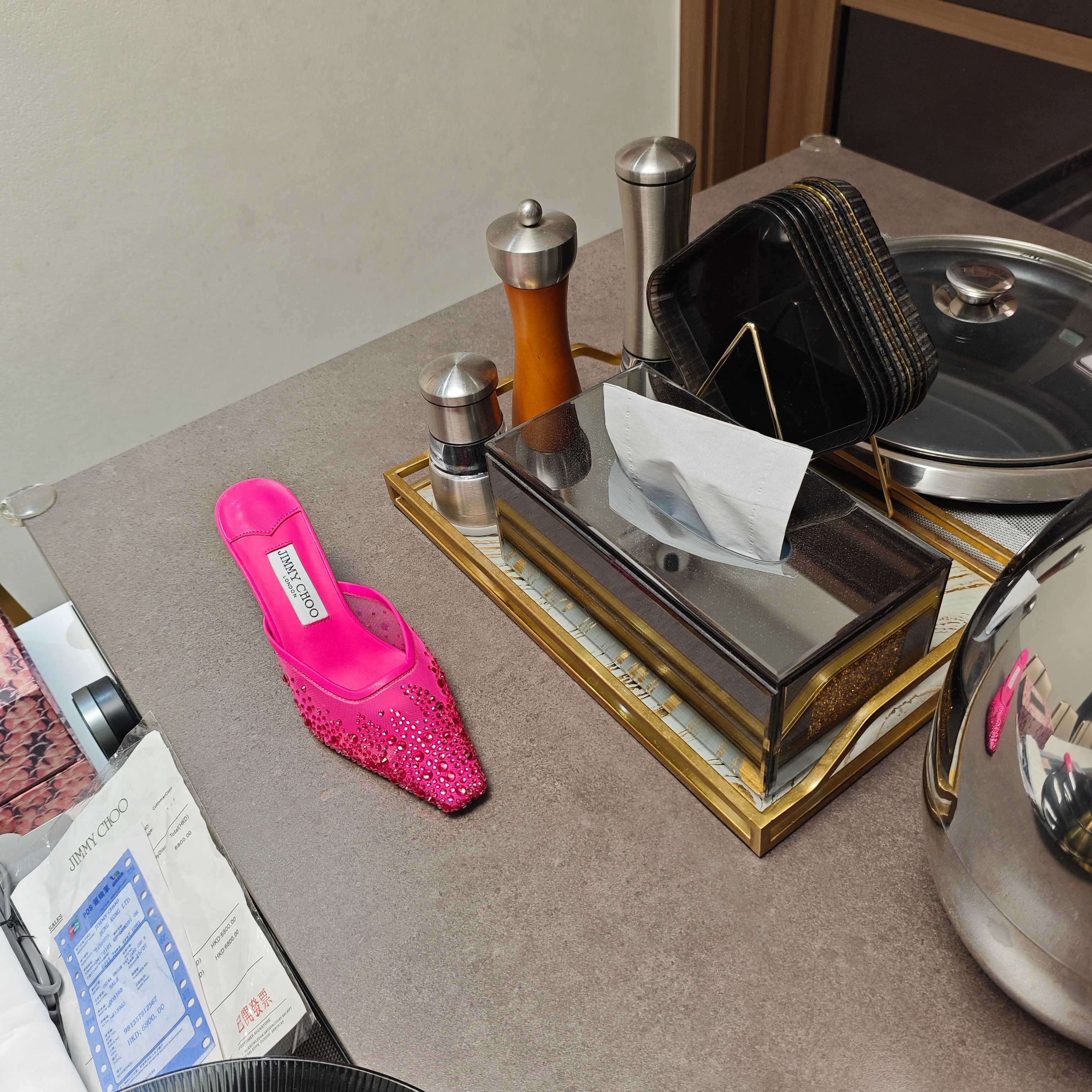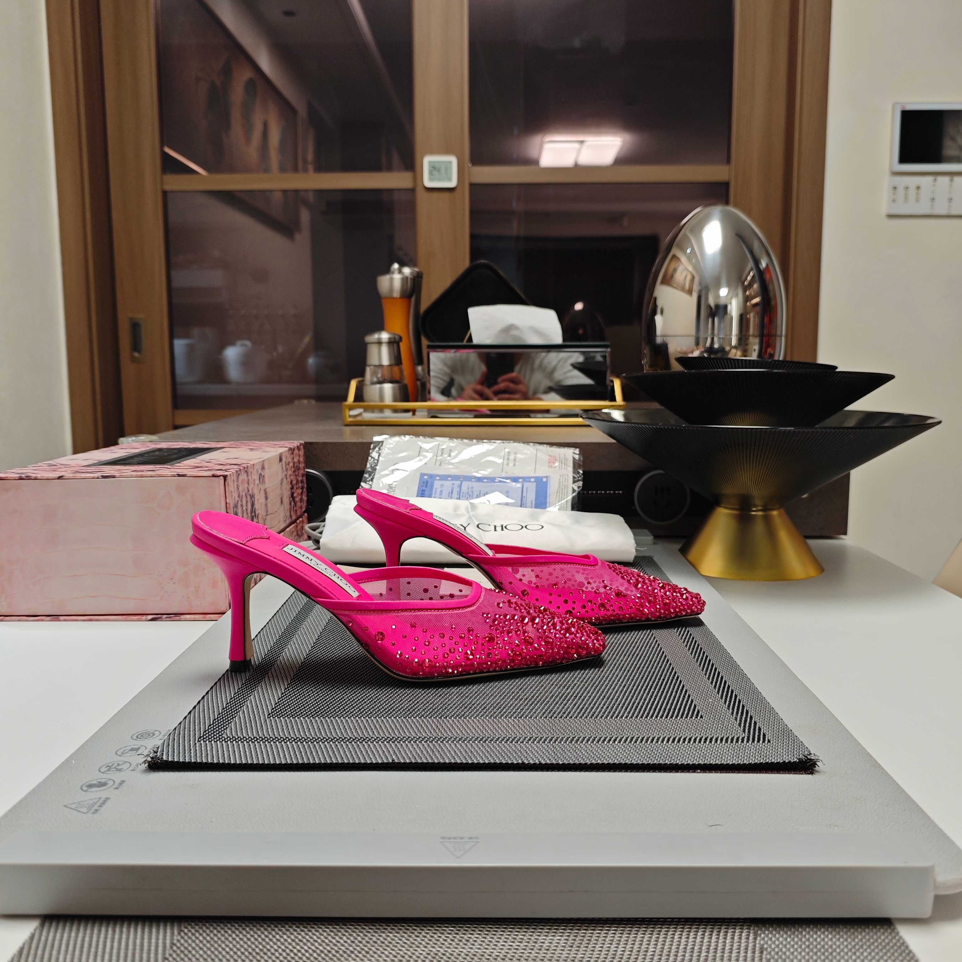 Jimmy 25 Vivi 100 Mule Deep Pink Mesh Gauze 240054