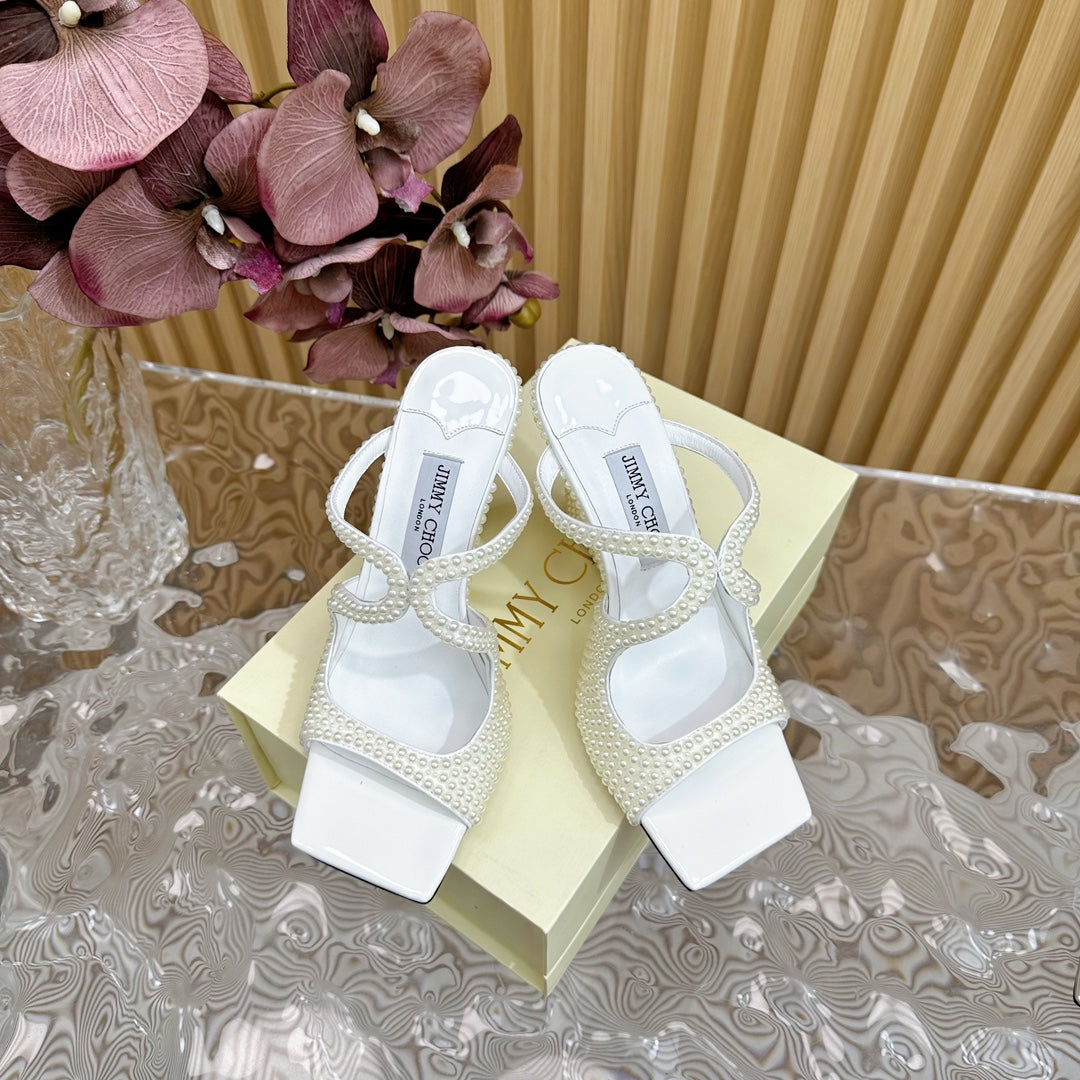 Jimmy Anise 105mm In White Pearl Studded Lambskin Mules 581538