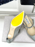 Jimmy Bing 65mm In Grey Black Stone Studded Cowhide Mules 593196