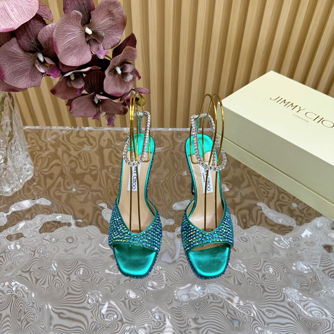 Jimmy Sandal 130mm In Duck Neck Blue Lambskin With Stone 581553