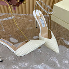 Jimmy Saeda 105 In White Pearl Studded Lambskin Pumps 581507