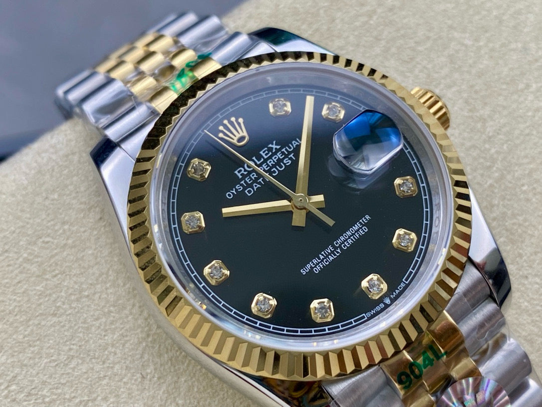 Datejust Black Diamond Dial Two Tone Yellow Gold Jubilee Bracelet