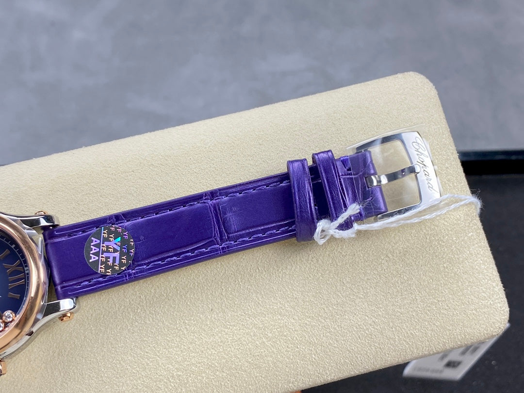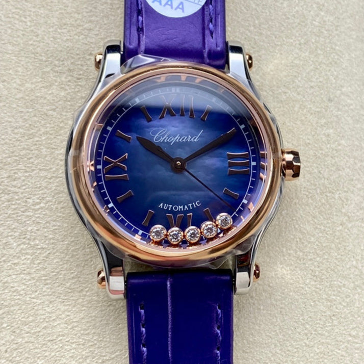 Happy Diamonds 30mm Pink Gold Blue Dial
