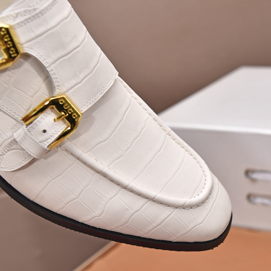 GG Men's Double Monk Strap Loafer White Embossed Cowhide